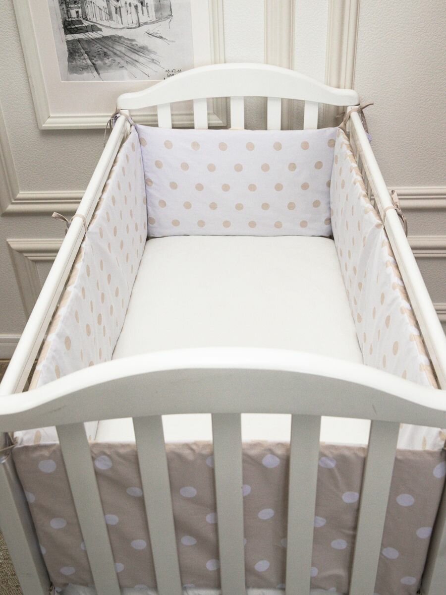 Бортики в кроватку для новорожденного Комплект 4шт. горох, бежевый информация: