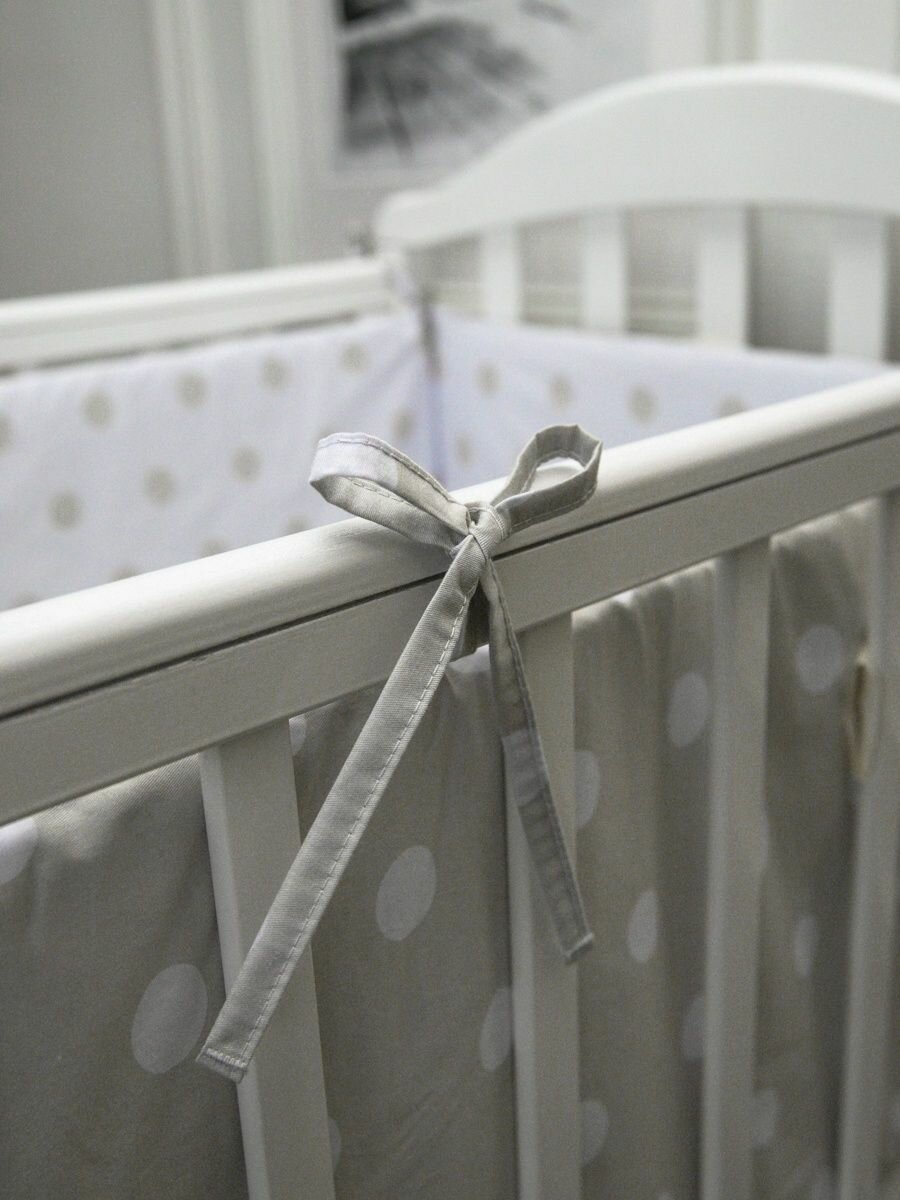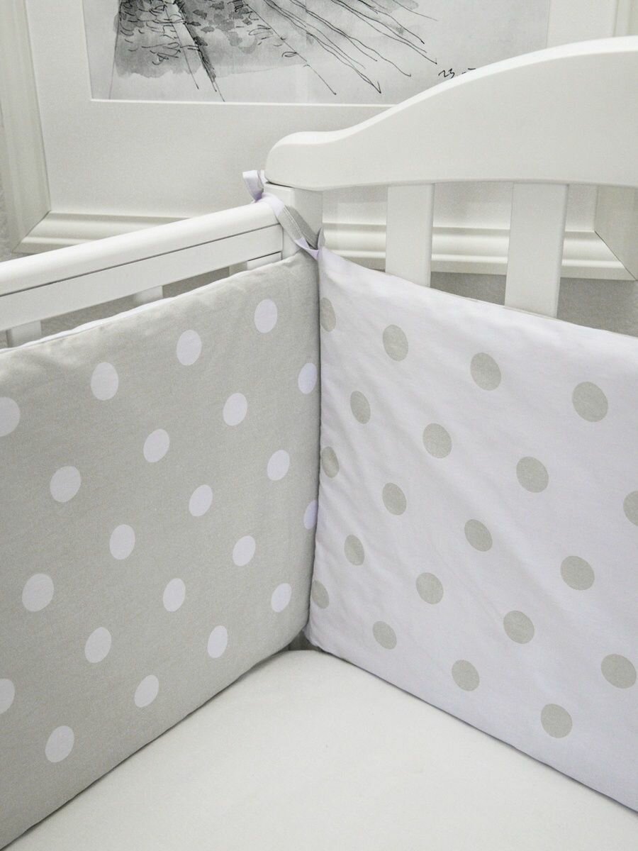 Бортики в кроватку для новорожденных Комплект 4шт. горох, серый информация: