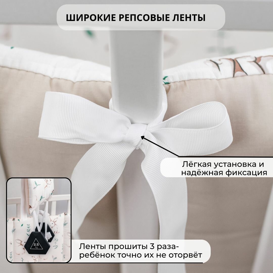 Бортики-заборчики в кроватку для новорожденных "Зайки в поле с оборотом в цвете "лён" 4 990 ₽