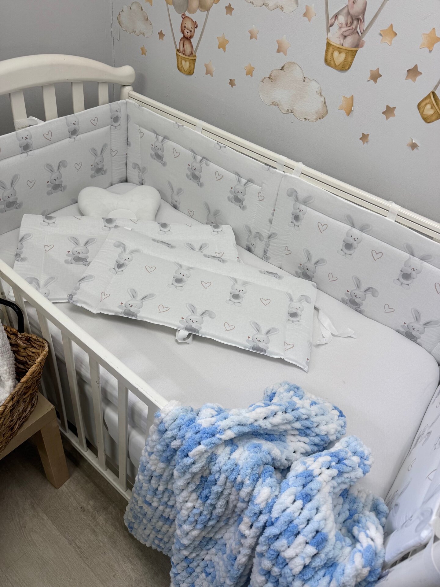 Бортики в кроватку Perina Soft Cotton, для новорожденных, съемные чехлы, гипоаллергенные, голубые, 360х29 см, хлопок