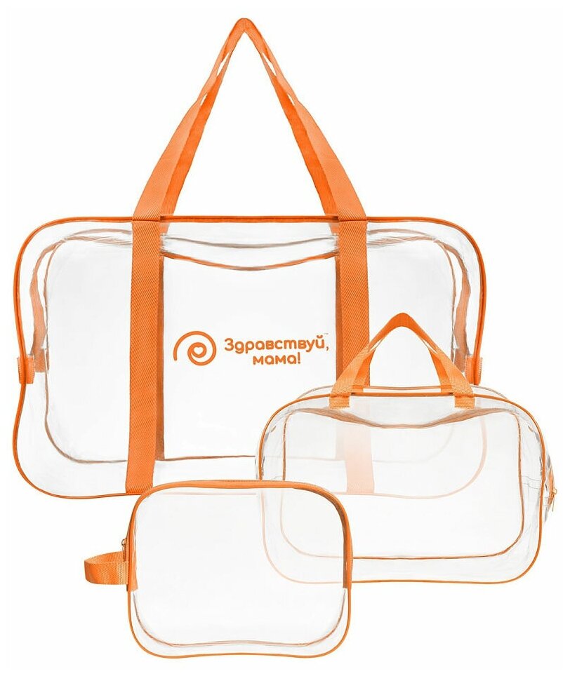 Сумка в роддом, прозрачная готовая для мамы и малыша "здравствуй, мама!", цвет оранжевый, набор из 3 шт. информация: