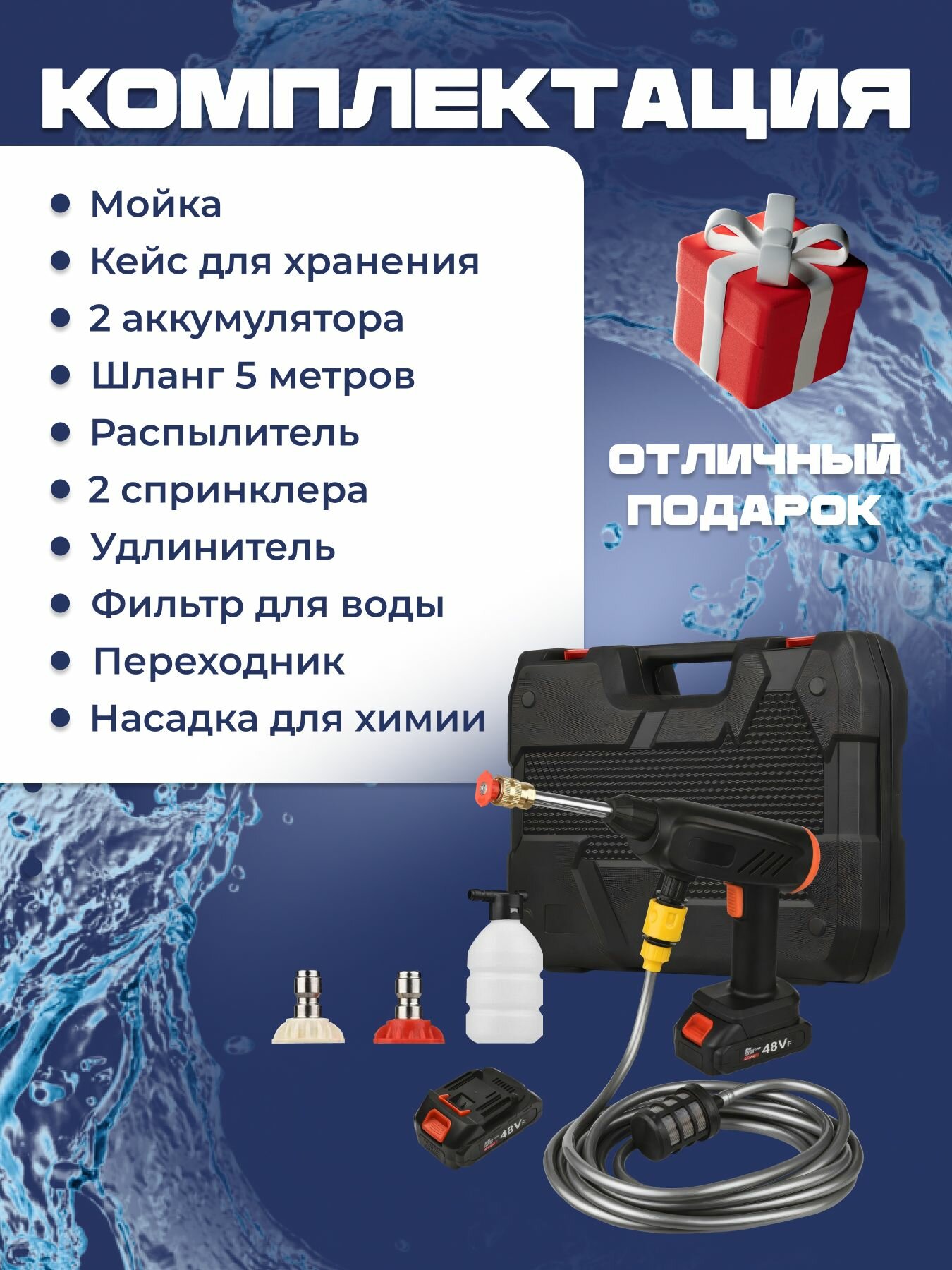 Мойка высокого давления аккумуляторная в кейсе/ портативная автомойка с мощным аккумулятором 96V