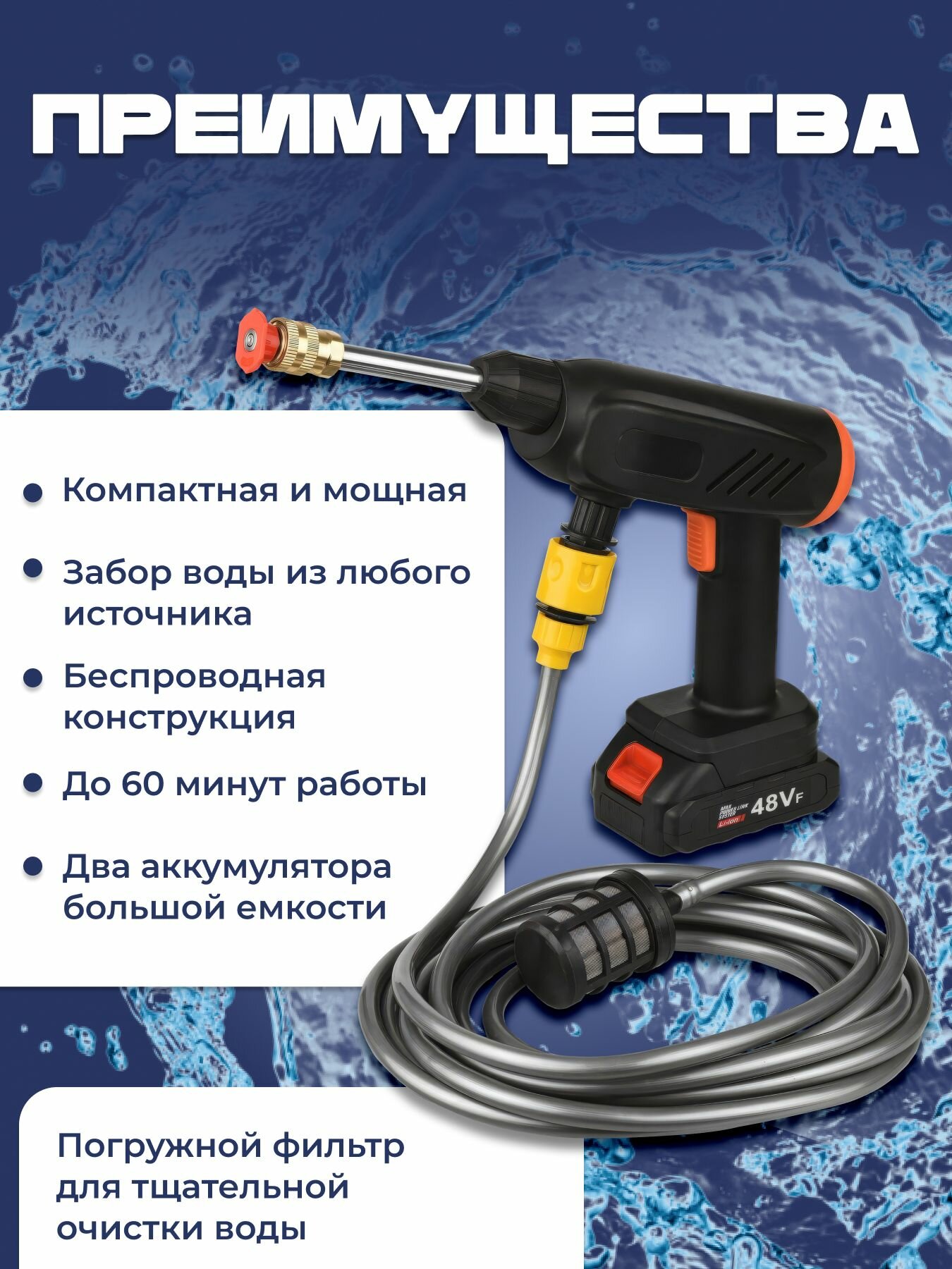 Аккумуляторная мойка высокого давления для автомобиля