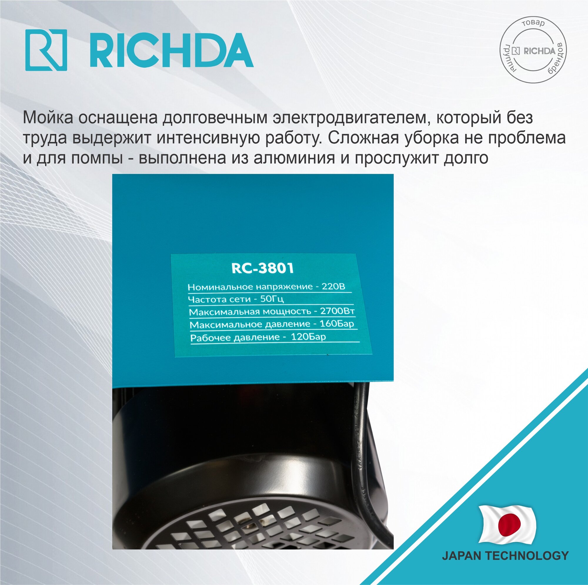 Мойка высокого давления RICHDA RC-3801 160Бар 2700Вт информация: