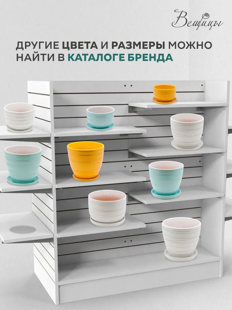 10 цен на Керамический горшок цветочный ВеЩицы "Полоска" с подставкой блюдцем / Горшок для цветов с поддоном / Горшок для растений / объем 1,4 л, цвет белый с серебристой полоской
