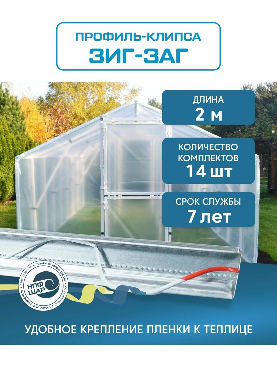 Профиль Зиг-Заг для крепления пленки для теплиц и парников, длина 2 метра, 14 шт. информация:
