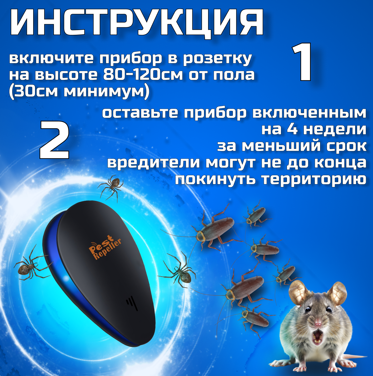 Ультразвуковой отпугиватель мышей, грызунов, вредителей и насекомых информация: