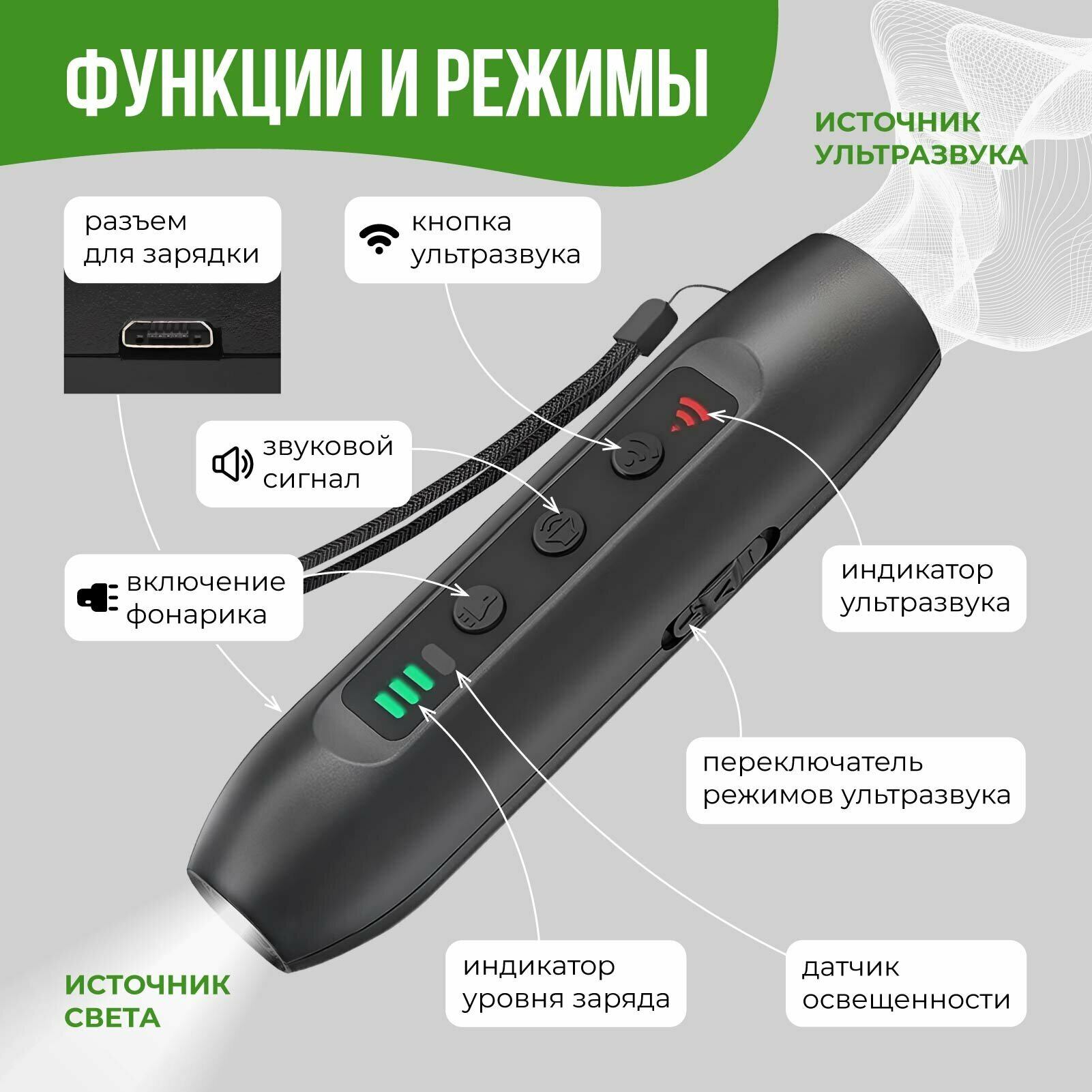 Ультразвуковой отпугиватель собак с фонариком для защиты от животных и дрессировки питомцев, антилай информация: