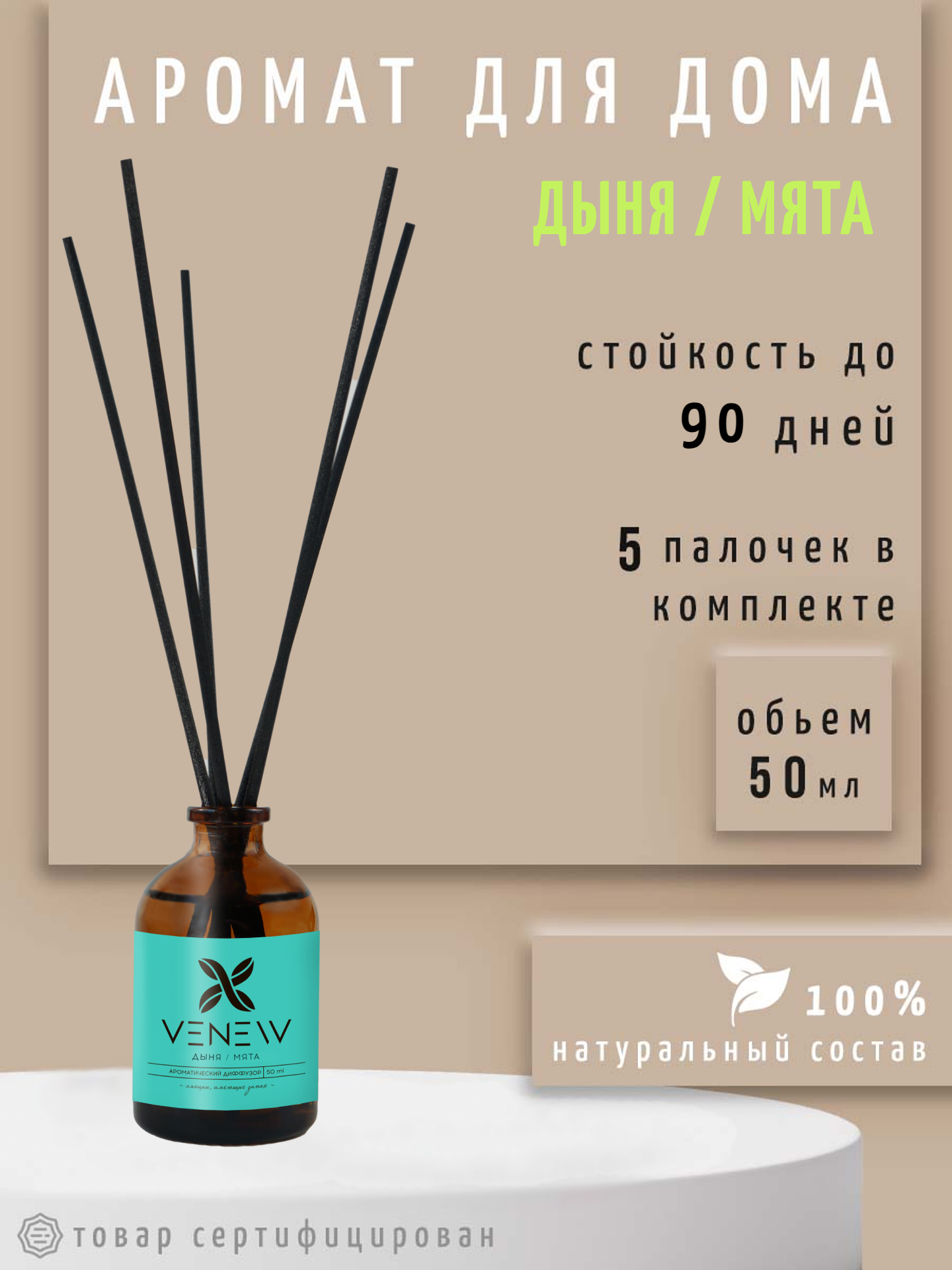 Диффузор для дома, ароматизатор с палочками VENEW "Дыня / мята" информация: