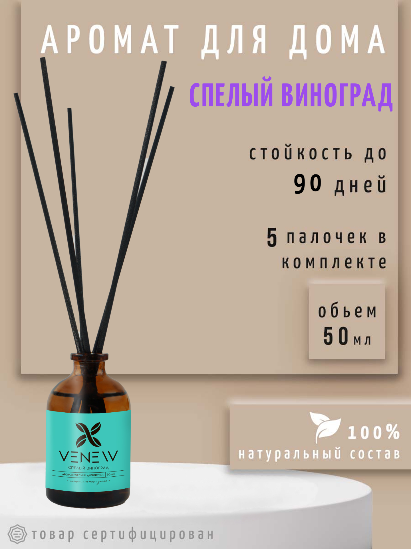 Отзывы на Диффузор для дома, ароматизатор с палочками VENEW "Спелый виноград"