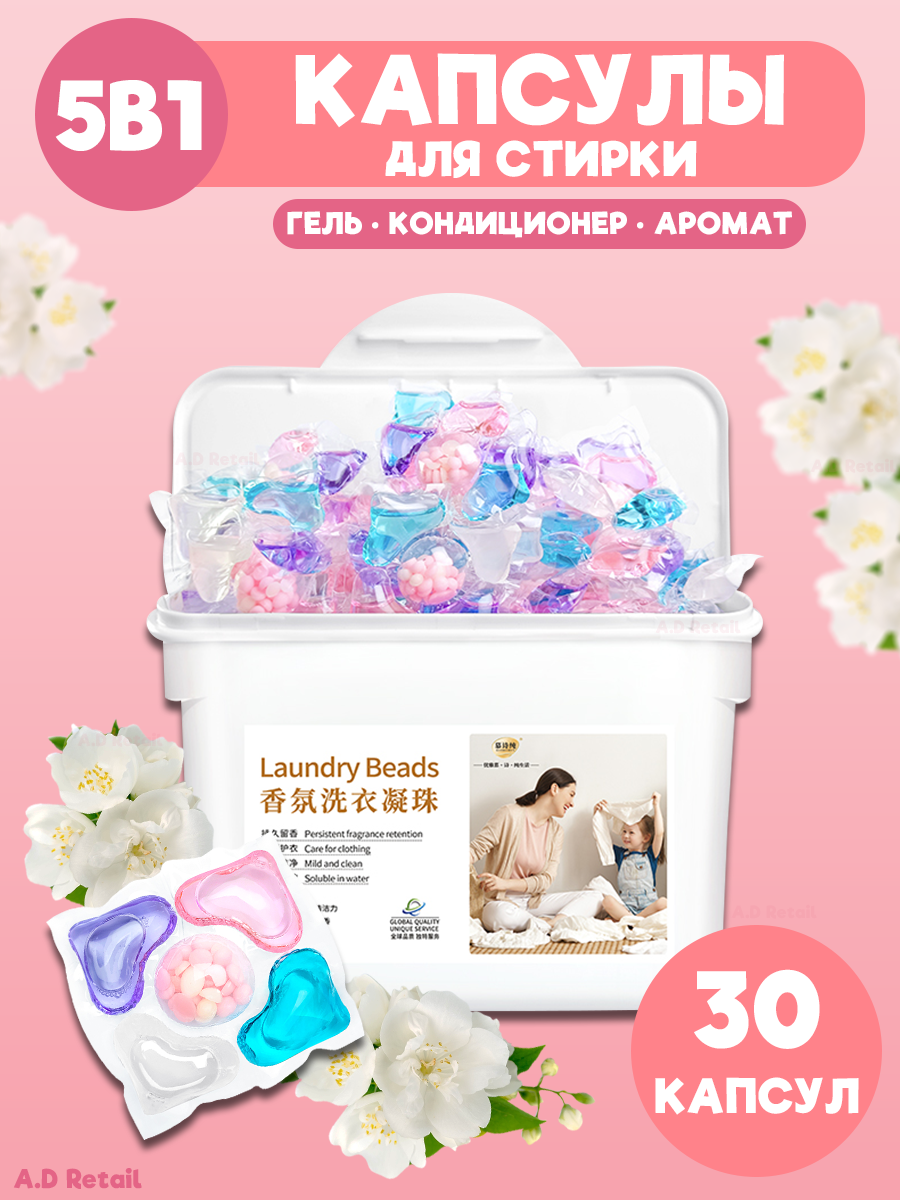 Капсулы для стирки 5 в 1 антибактериальные с кондиционером 30 шт информация: