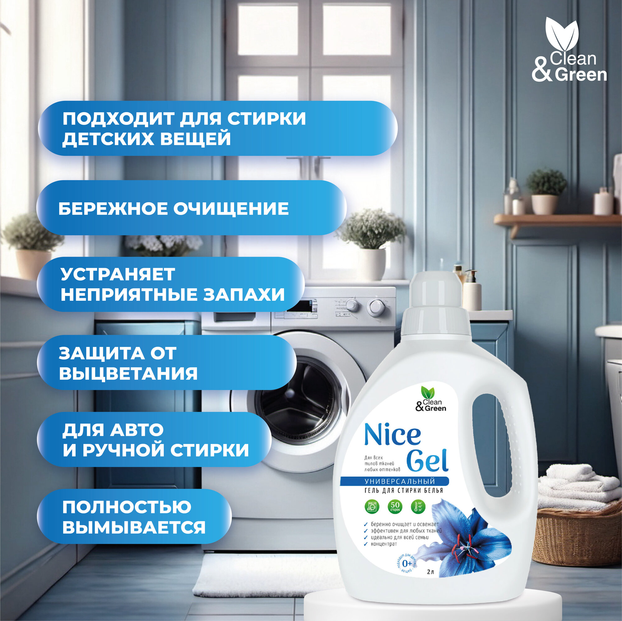 Гель для стирки "Nice Gel" универсальный (концентрат) 2 л. (ПЭНД) Clean&Green CG8288 информация:
