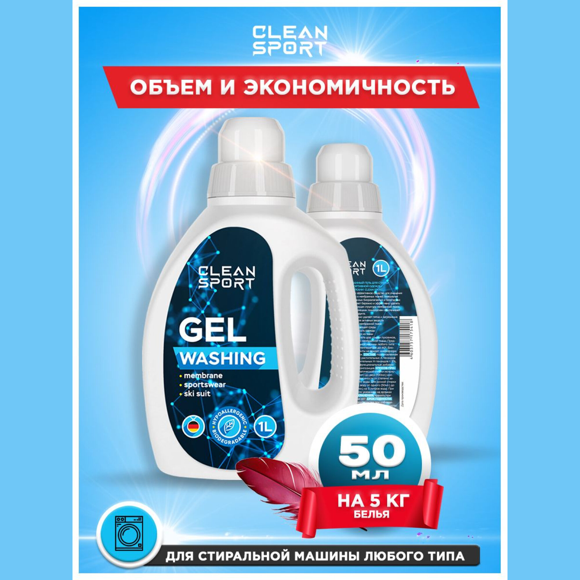 Гель для стирки мембраны, пуховиков, спортивной одежды и горнолыжных костюмов "CLEAN SPORT", 5 л информация: