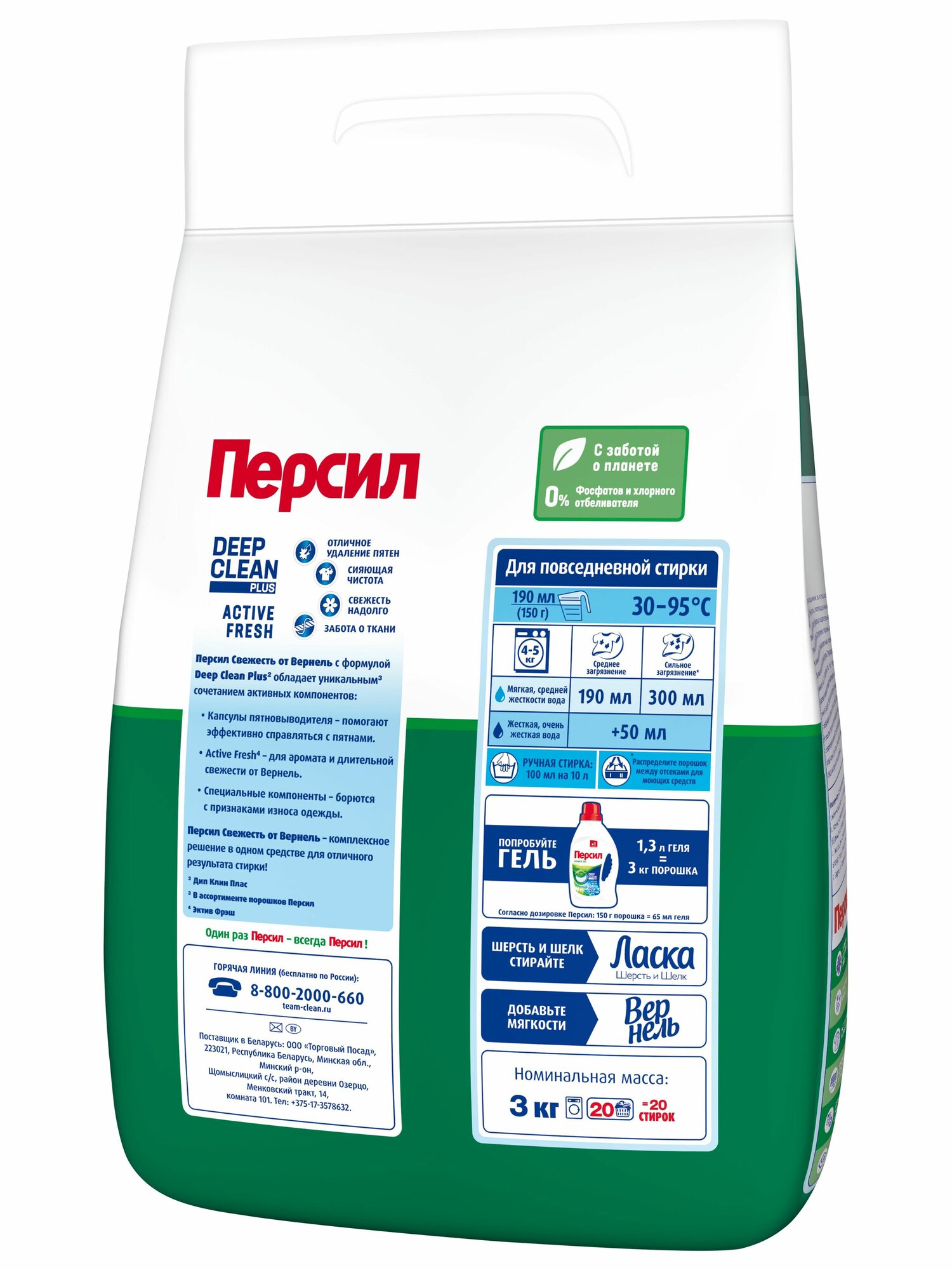 10 цен на Порошок стиральный автомат Персил Свежесть от Вернель, 3 кг, для белого белья, 20 стирок, средство для стирки