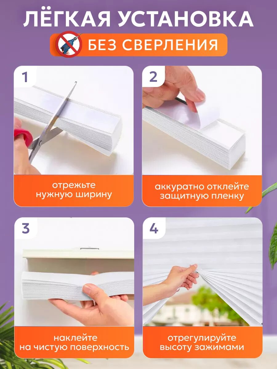 Отзывы на Самоклеящиеся белые жалюзи плиссе на окна горизонтальные на липучке; 2 шт 90х150