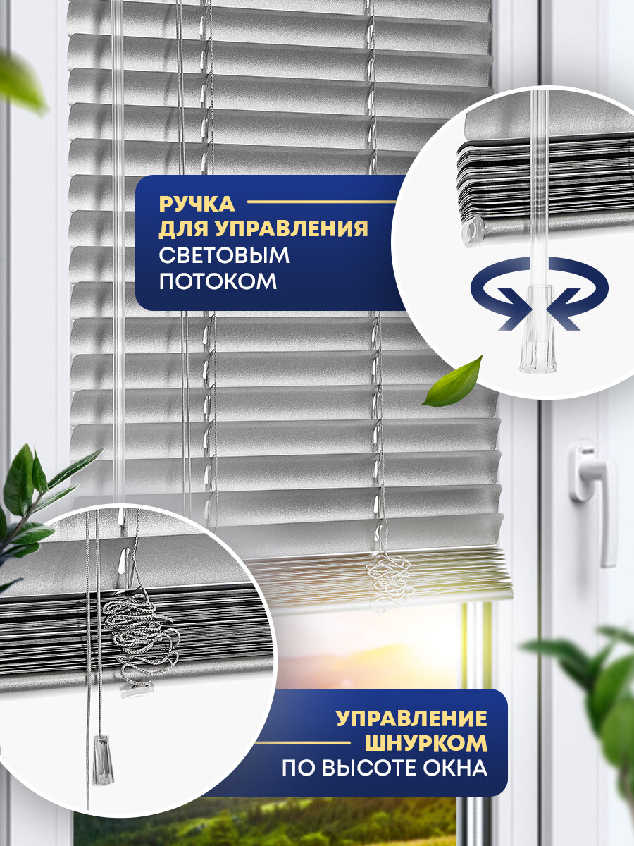 Отзывы на Жалюзи на окна горизонтальные Ш 50 см x В 160 см, управление Левое, материал алюминий, цвет серебро