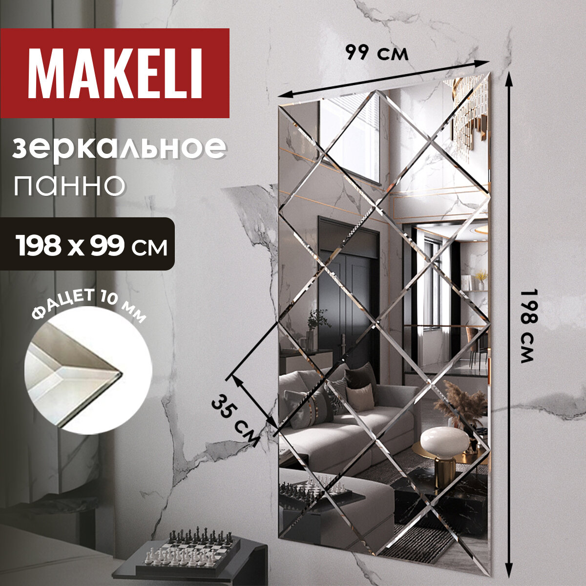 Зеркальная плитка, панно на стену, квадрат серебро 35*35, 198*99 см информация: