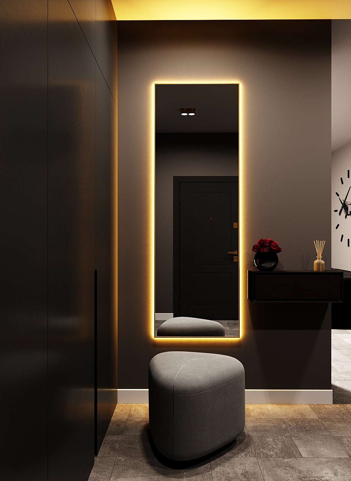 Зеркало с подсветкой в алюминиевой раме, настенное, ONE MIRROR, 180х60 см. Черное. Свет: Теплый белый 3000К 13 106 ₽