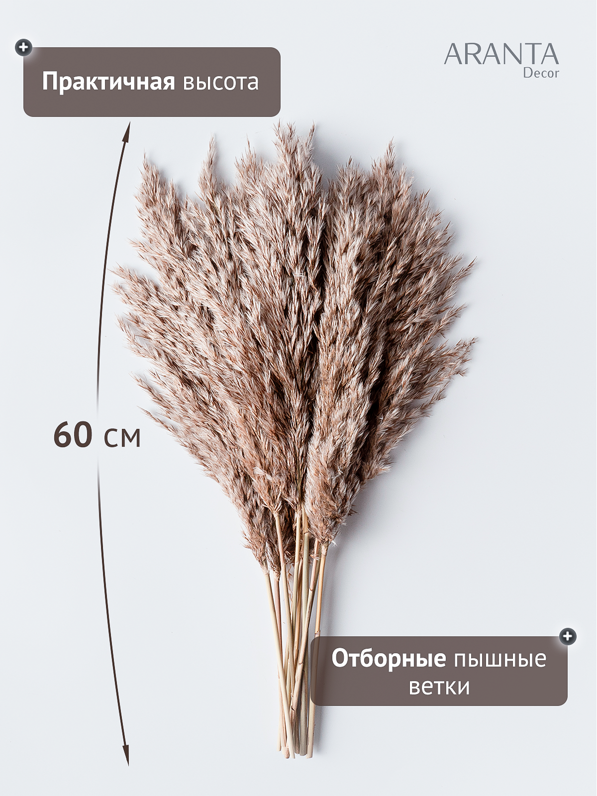 Отзывы на Натуральная Пампасная трава 10шт, Сухоцветы для декора ARANTA, Букет сухоцветов 60см, 150гр