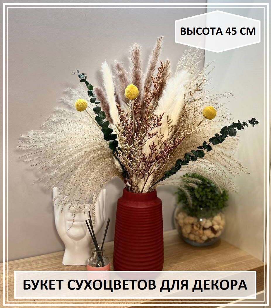10 цен на Сухоцветы для декора дома букет натуральной пампасной травы с эвкалиптом