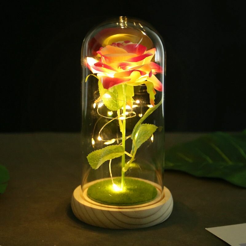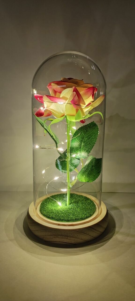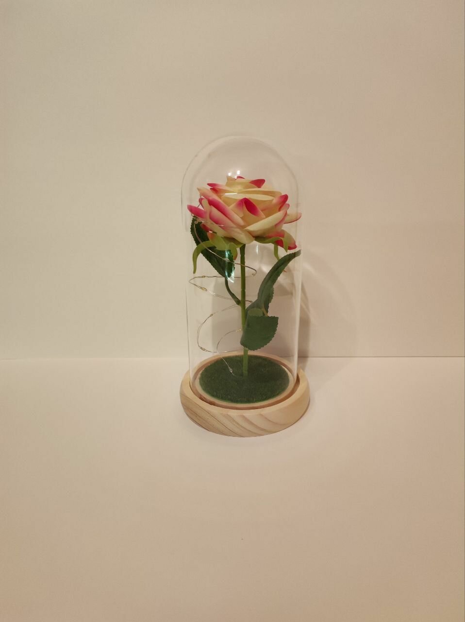 | Подробная комплектация | роза - искусственный шелк, колба - стекло, подставка дерево, подсветка - светодиодная нить |