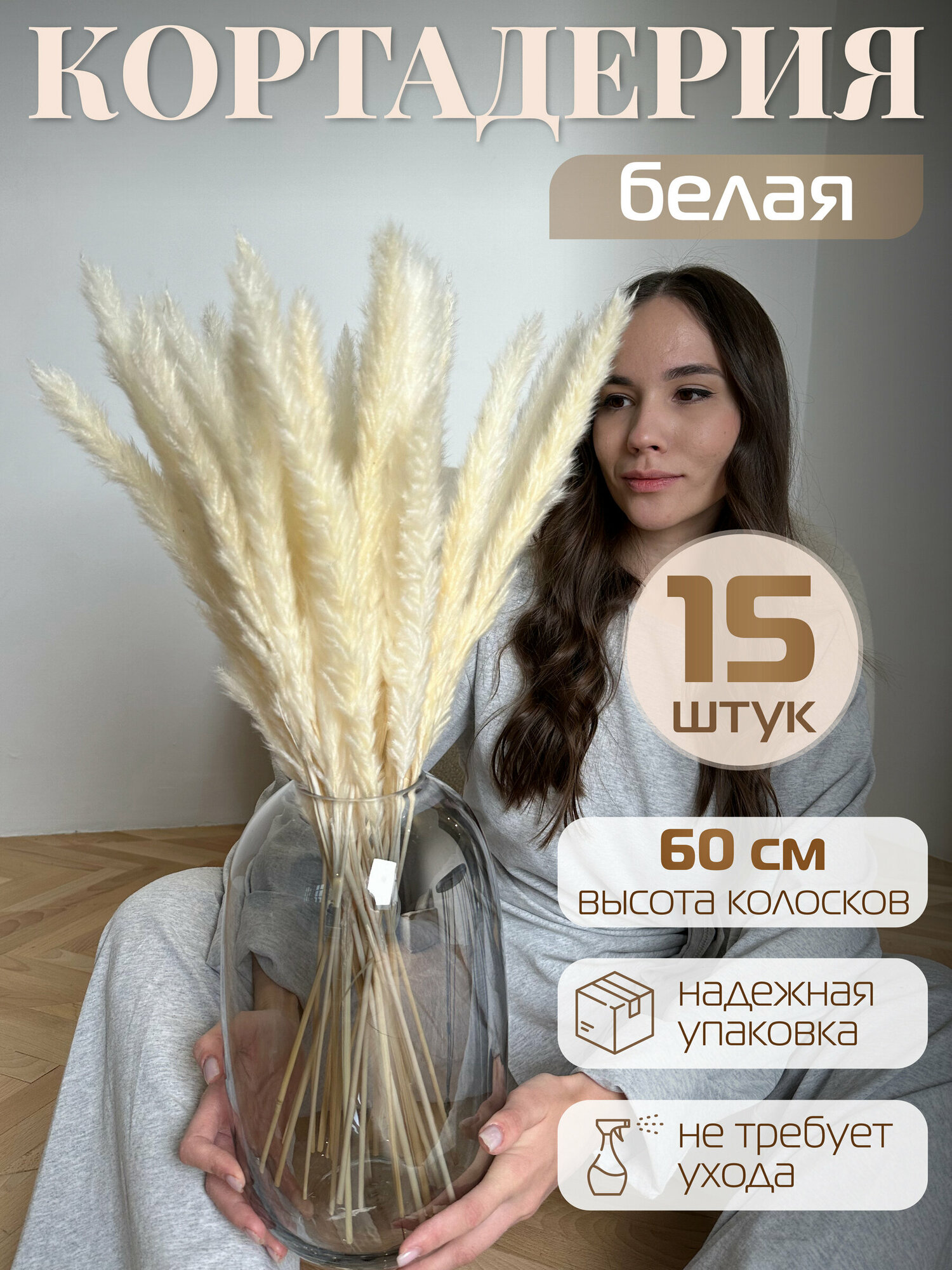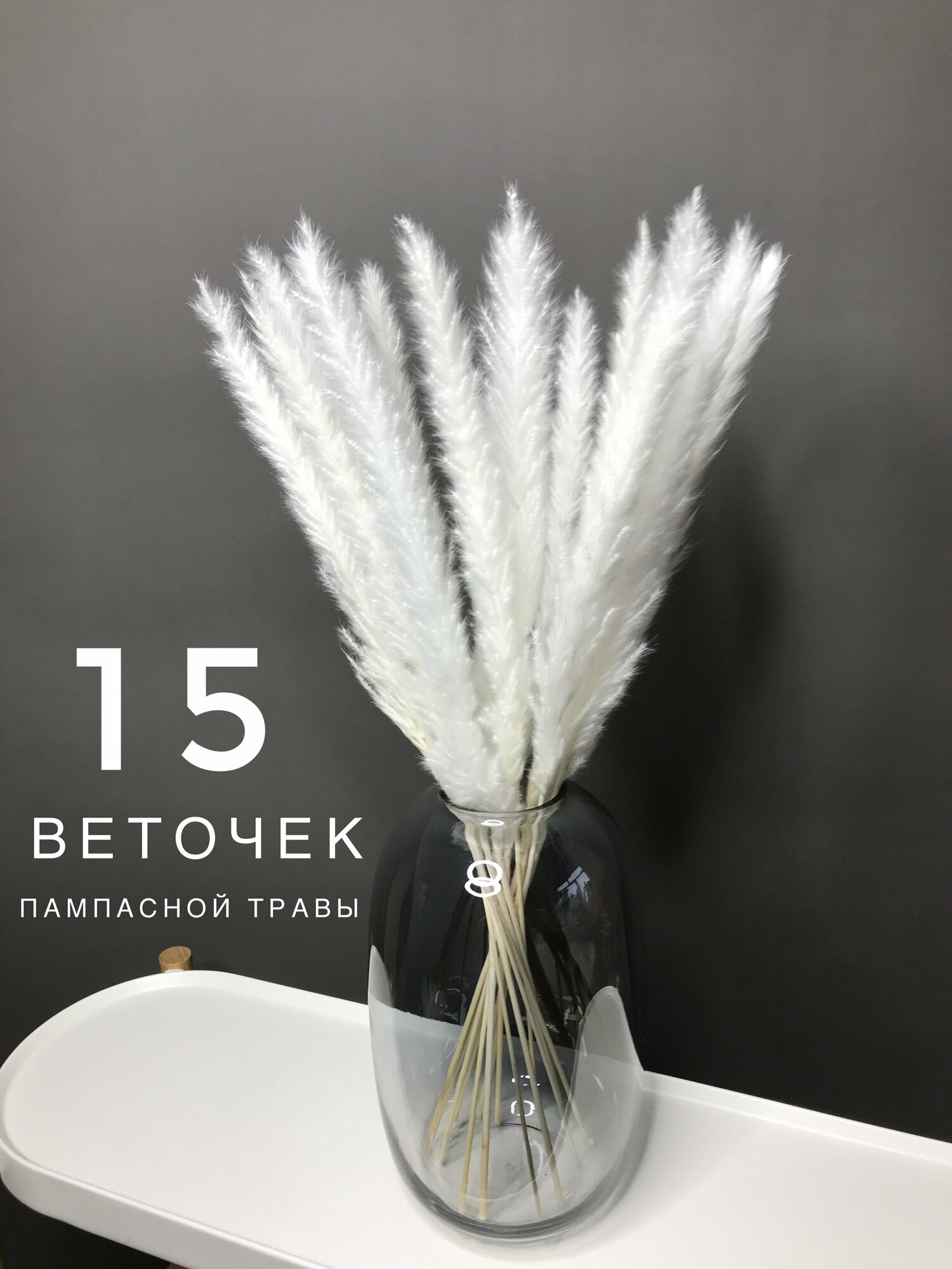 10 цен на Сухоцветы для декора пампасная трава белая букет 15 шт