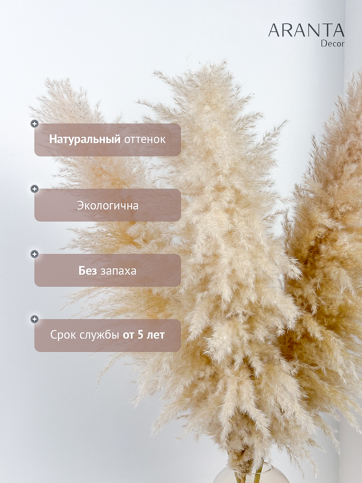 10 цен на Пампасная трава высокая 110см, Сухоцветы для декора ARANTA 250гр, 3 ветки