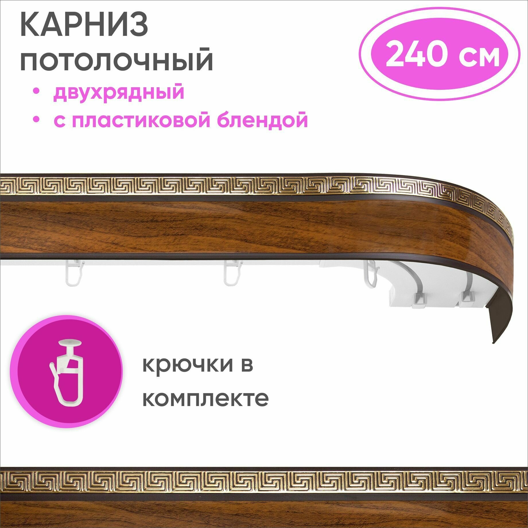 10 цен на Карниз для штор двухрядный потолочный с планкой 55мм составной из двух частей , цвет: орех 240см