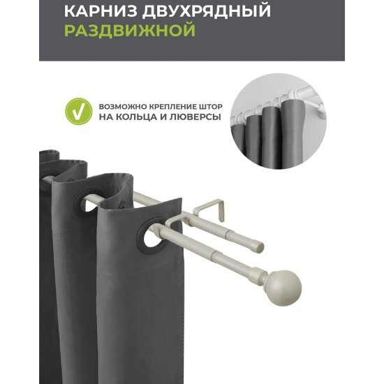 Карниз для штор двухрядный (2 ряда) металлический 300 см, Жемчуг. Телескоп диаметр 16/19 мм; длина 160/300 см. 15.689 2 920 ₽
