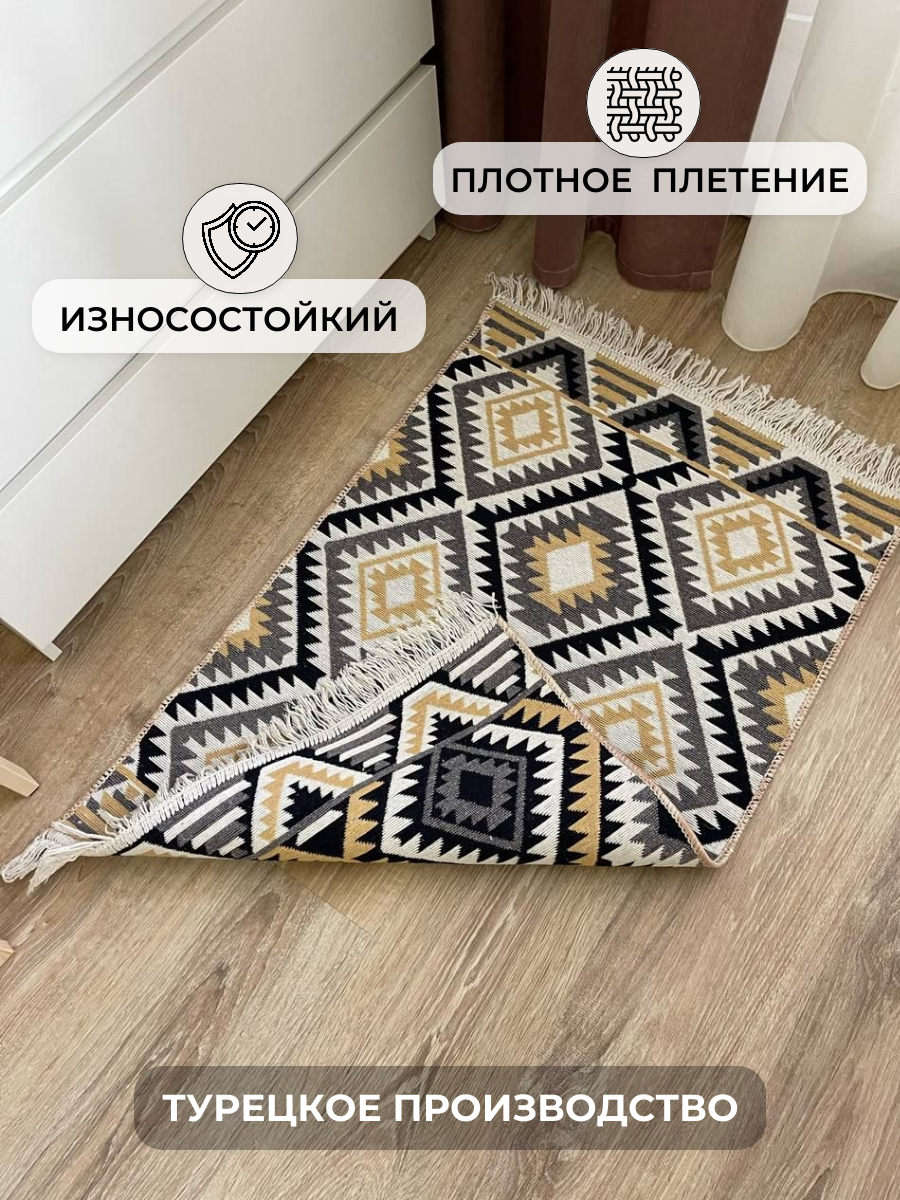 Коврик комнатный хлопковый 60 см на 90 см / экокилим турецкий / прикроватный коврик / двусторонний придверный коврик / гипоаллергенный коврик в детскую Musafir Home информация: