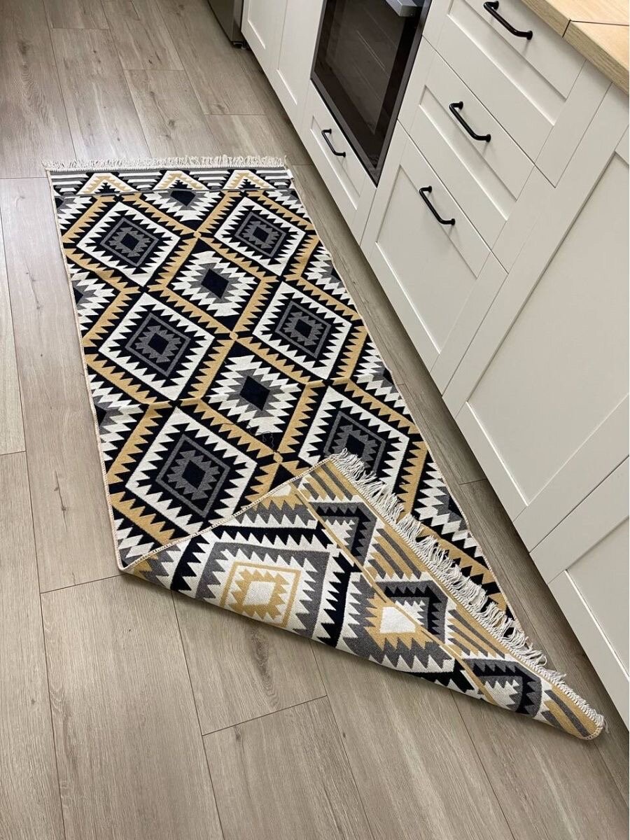 Отзывы на Турецкая хлопковая дорожка с геометрическим принтом 80 х 200 см Musafir Home / безворсовый комнатный ковер