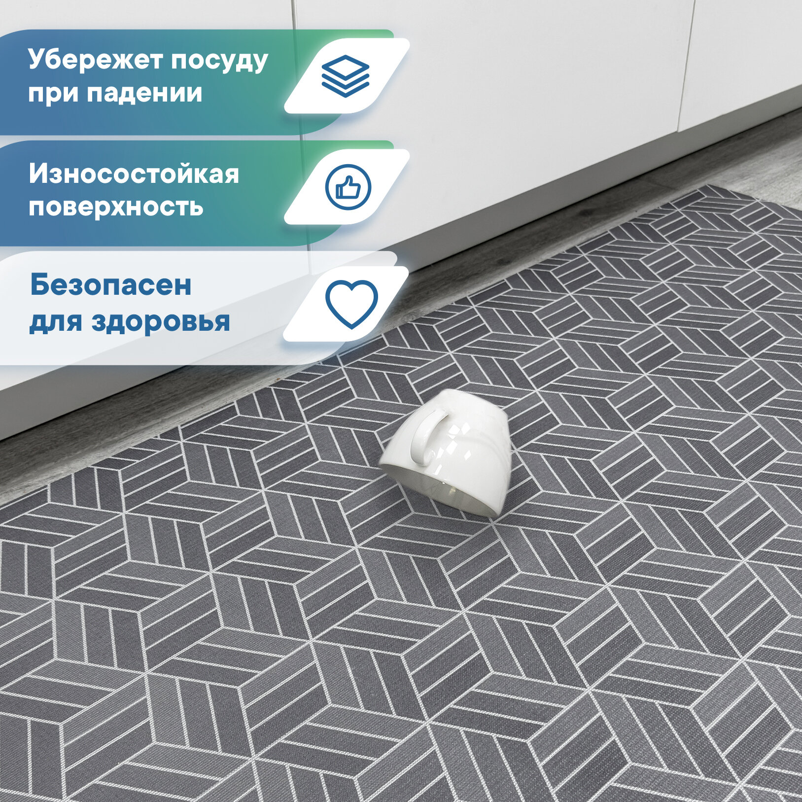 10 цен на Коврик дорожка напольный VILINA противоскользящий мягкий безворсовый в прихожую в комнату в коридор на кухню 65х180 см кубы "Элемент" серый куб