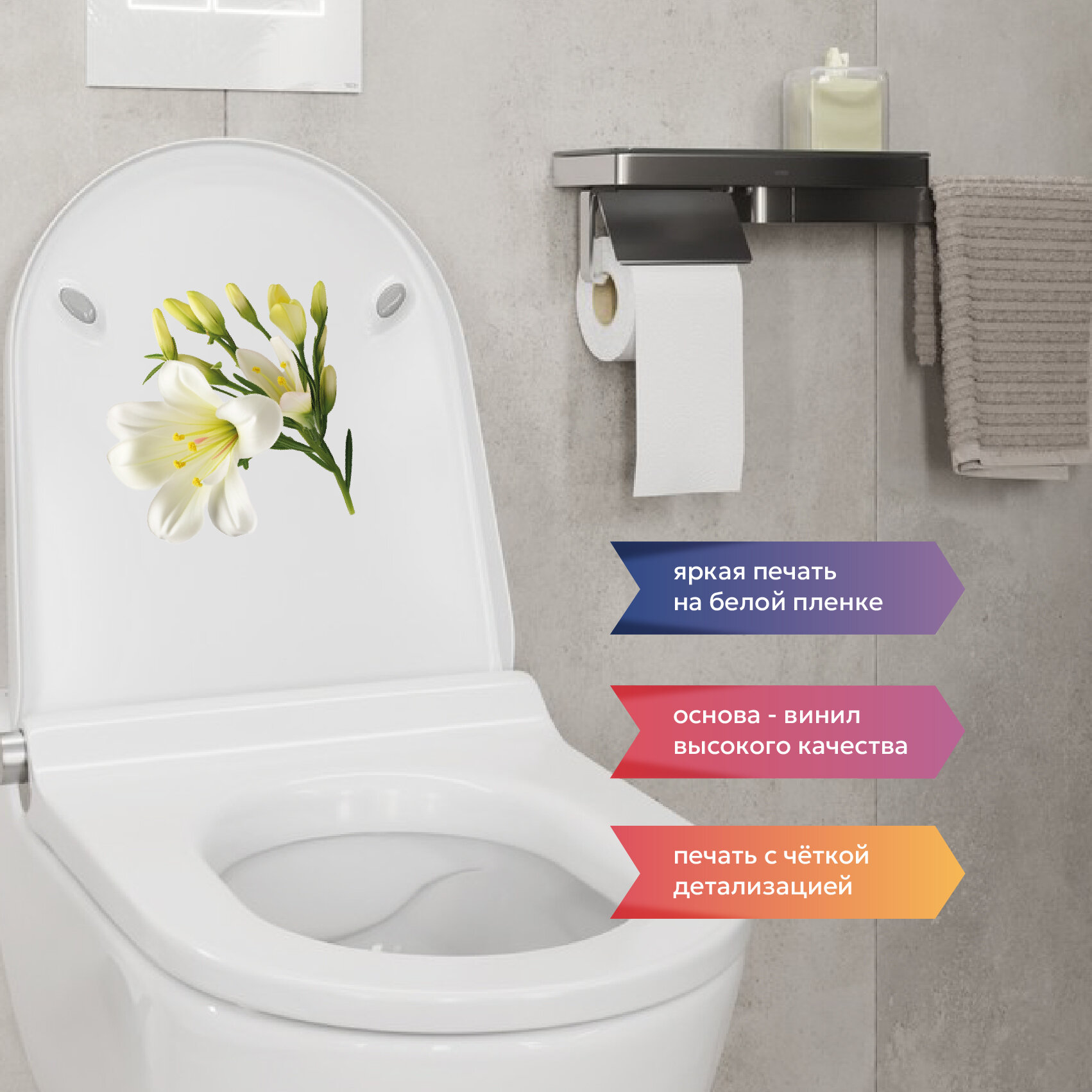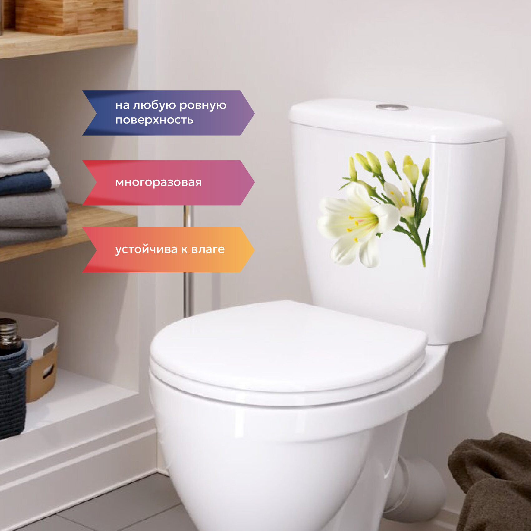 Отзывы на Интерьерная красивая наклейка на унитаз, на холодильник, на шкафчик, на дверь белая лилия