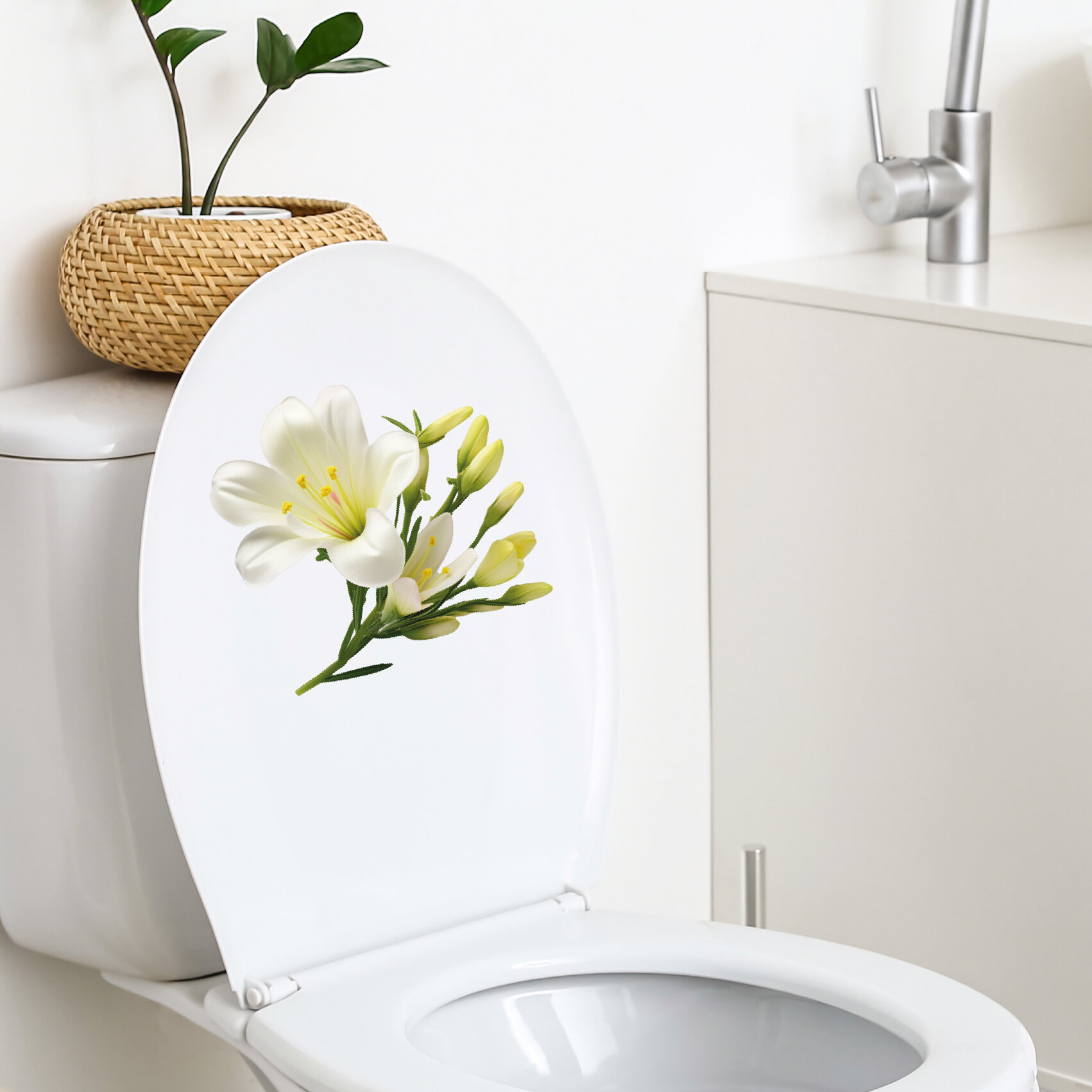 Интерьерная красивая наклейка на унитаз, на холодильник, на шкафчик, на дверь белая лилия информация: