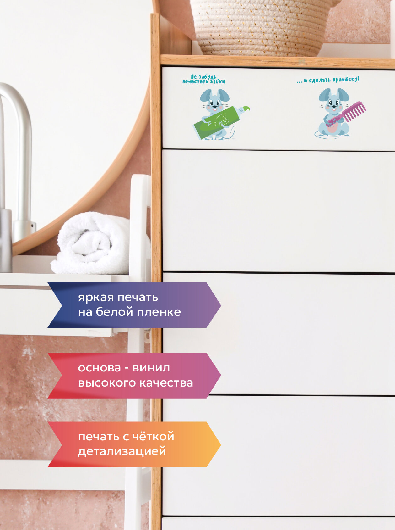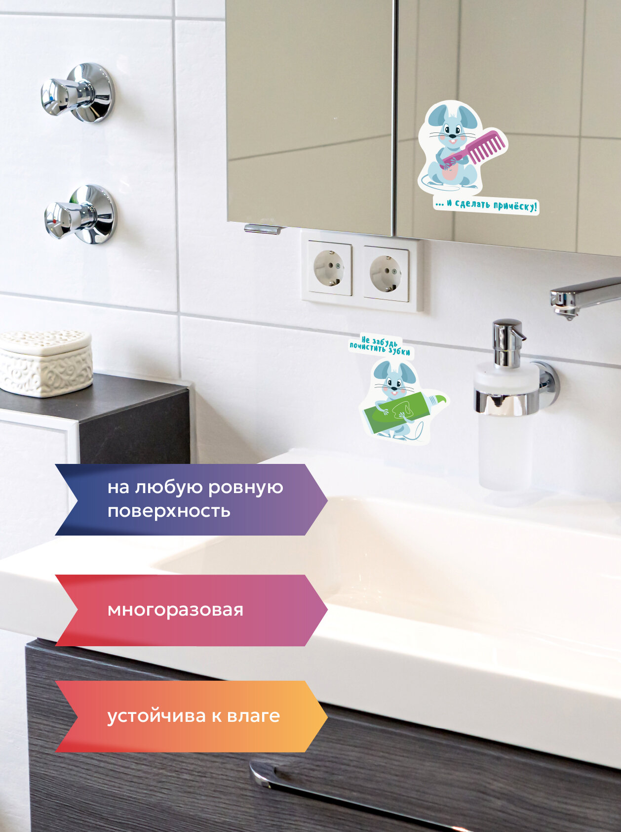 Отзывы на Наклейки детские интерьерные напоминалки в ванную, в санузел на стену добрая мышка не забудь почистить зубы и сделать прическу