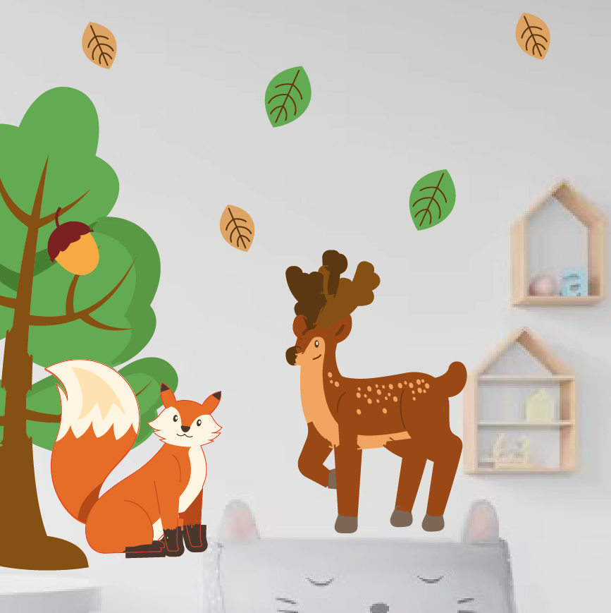 10 цен на Интерьерная наклейка для декора олени в лесу на стену