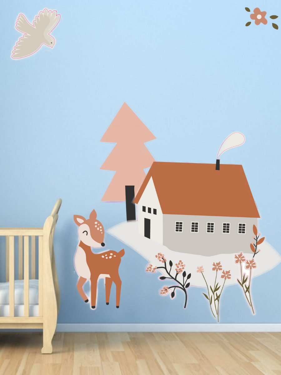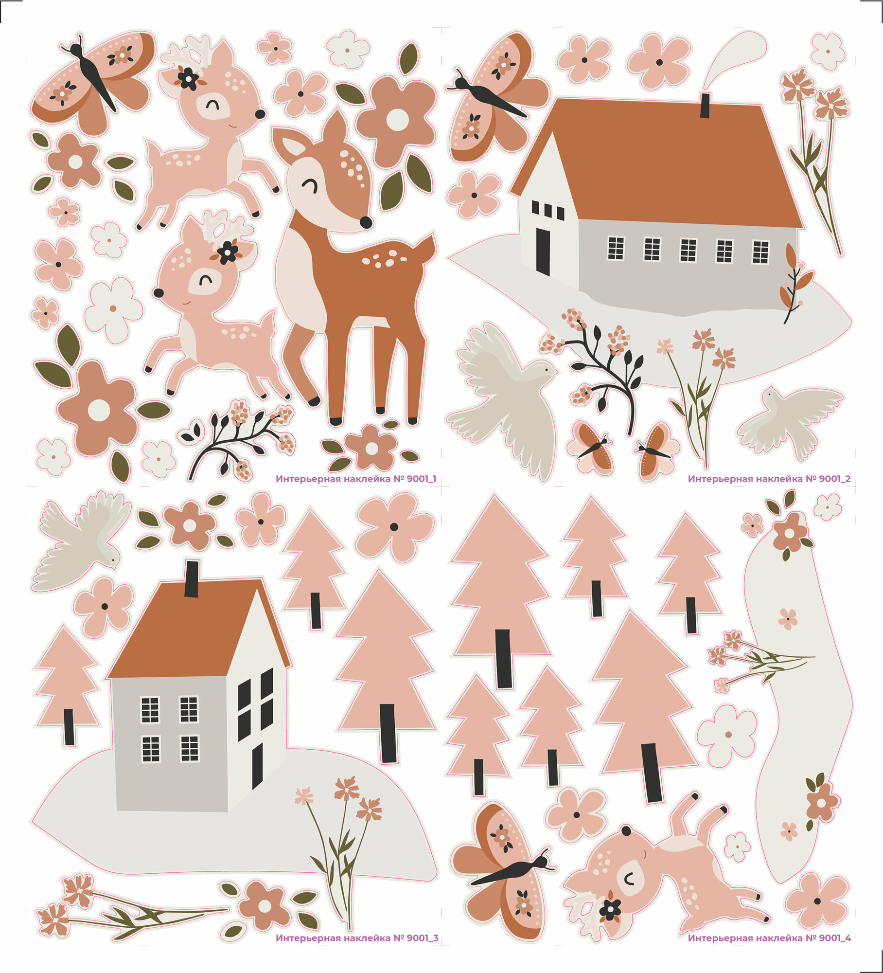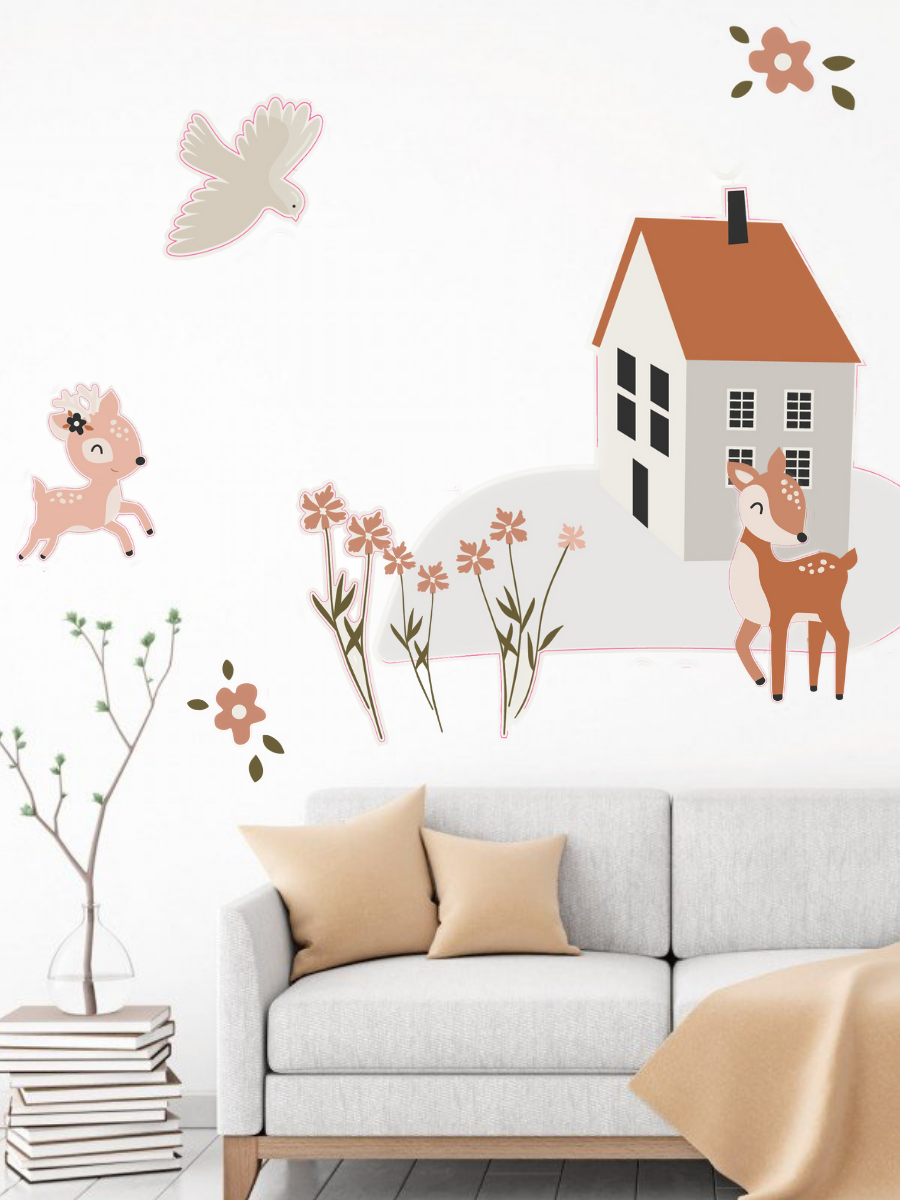 Интерьерная наклейка для декора олени в лесу на стену 499 ₽