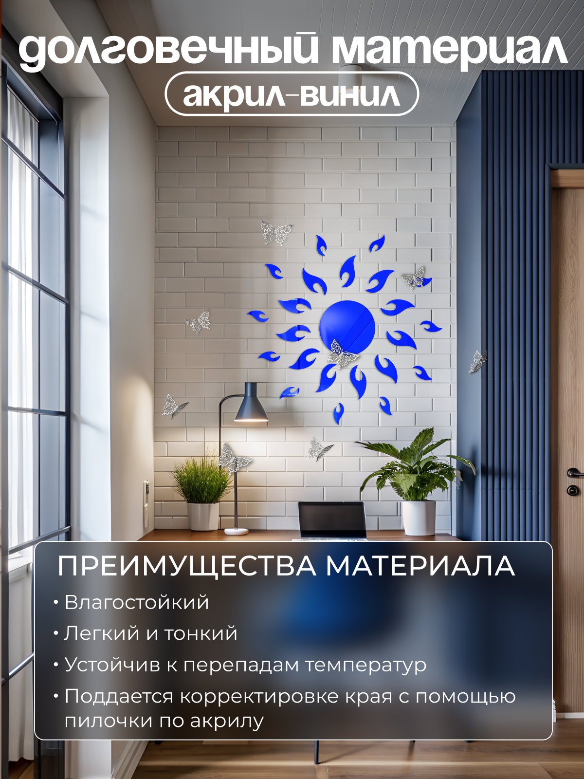 Отзывы на Наклейки интерьерные зеркальные INFINITY интерьер, декор на стену солнце синее+бабочка серебро 12шт.