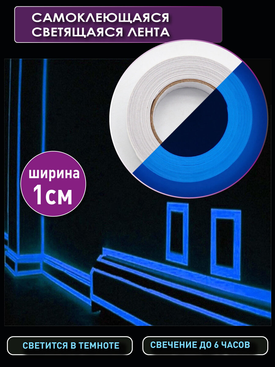 10 цен на OlLena / Самоклеющаяся синяя светящаяся лента, люминесцентная лента-скотч, Светонакопительная интерьерная наклейка - 3 м