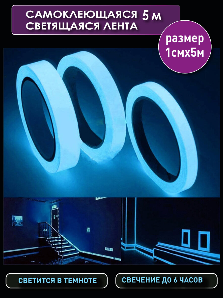 10 цен на OlLena / Самоклеющаяся синяя светящаяся лента, люминесцентная лента-скотч, Светонакопительная интерьерная наклейка - 5 м