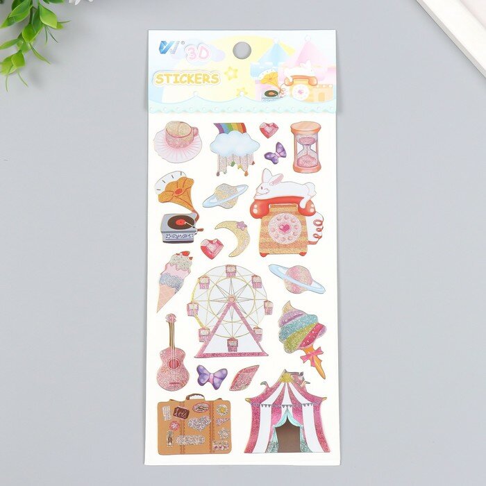 10 цен на Наклейка пластик с блёстками "Цирк" микс 10х22,5 см