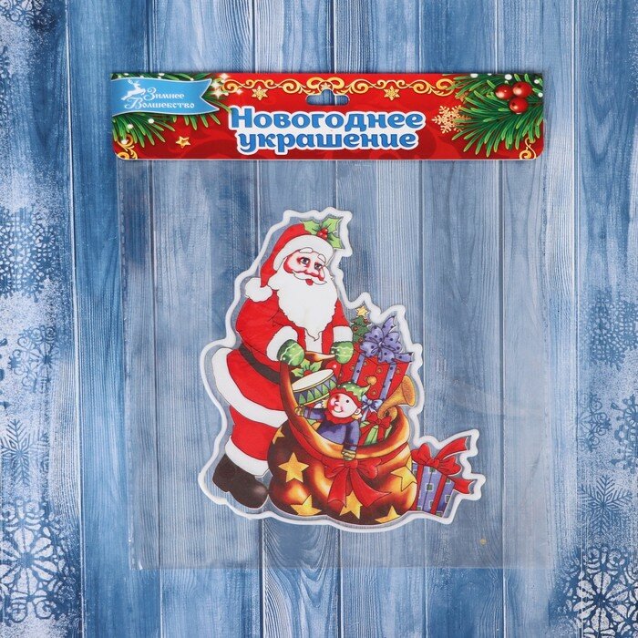 10 цен на Наклейка на стекло "Дед Мороз с малышом" 12х14 см