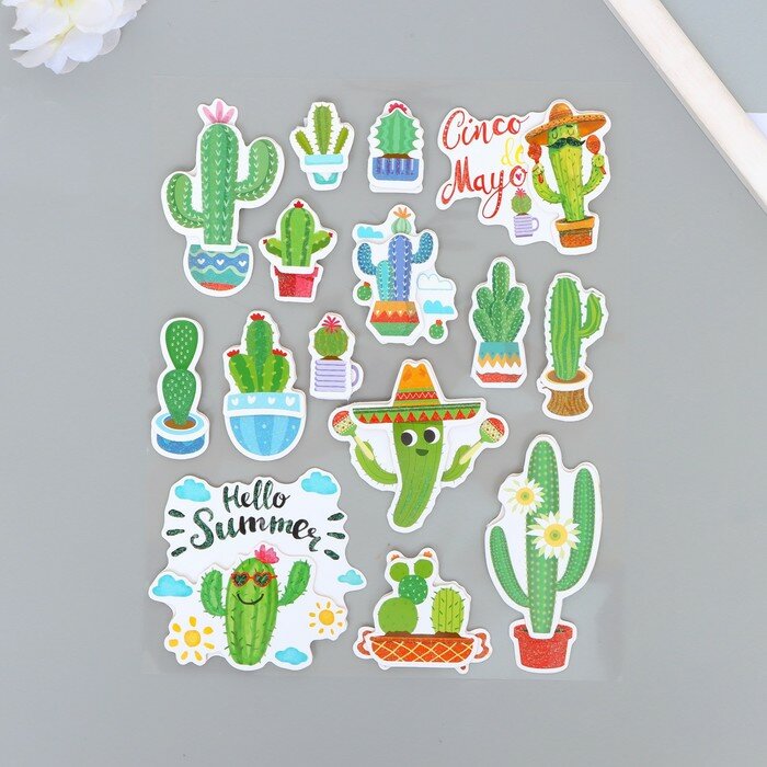 10 цен на Наклейка пластик, картон 6D с блёстками "Весёлый кактус" 25,5х17,5 см
