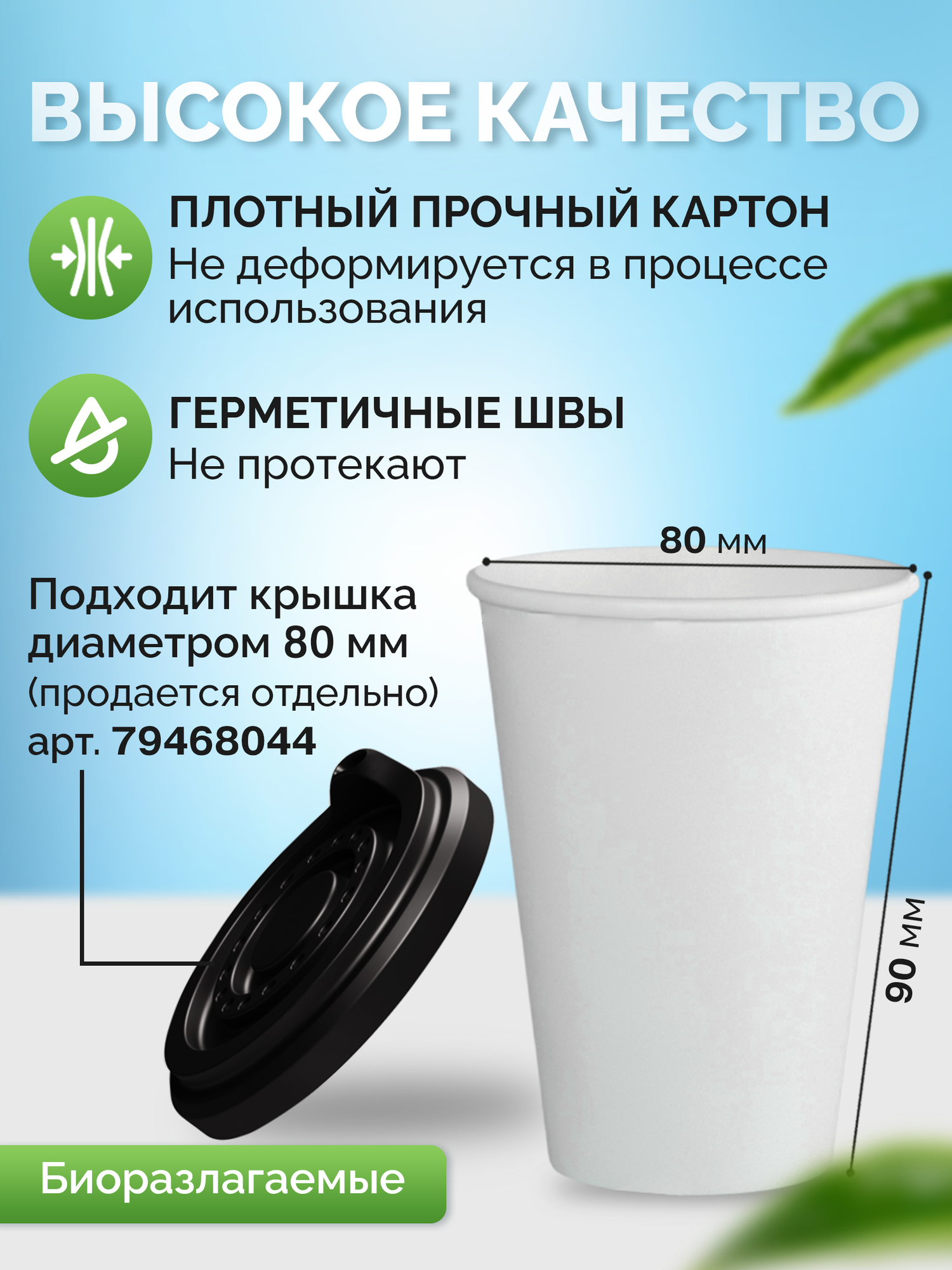 | Особенности | биоразлагаемая / подходит для горячего |