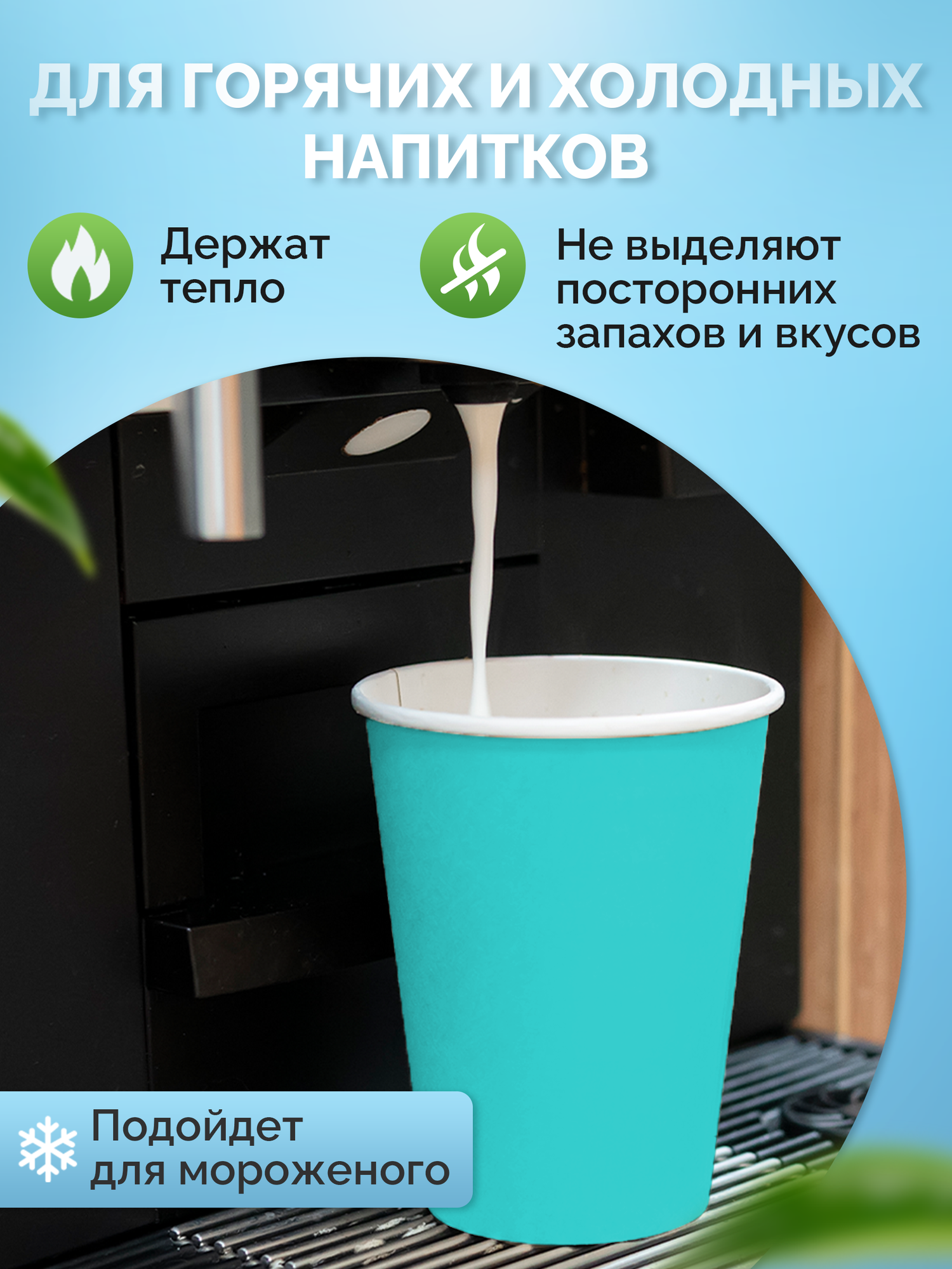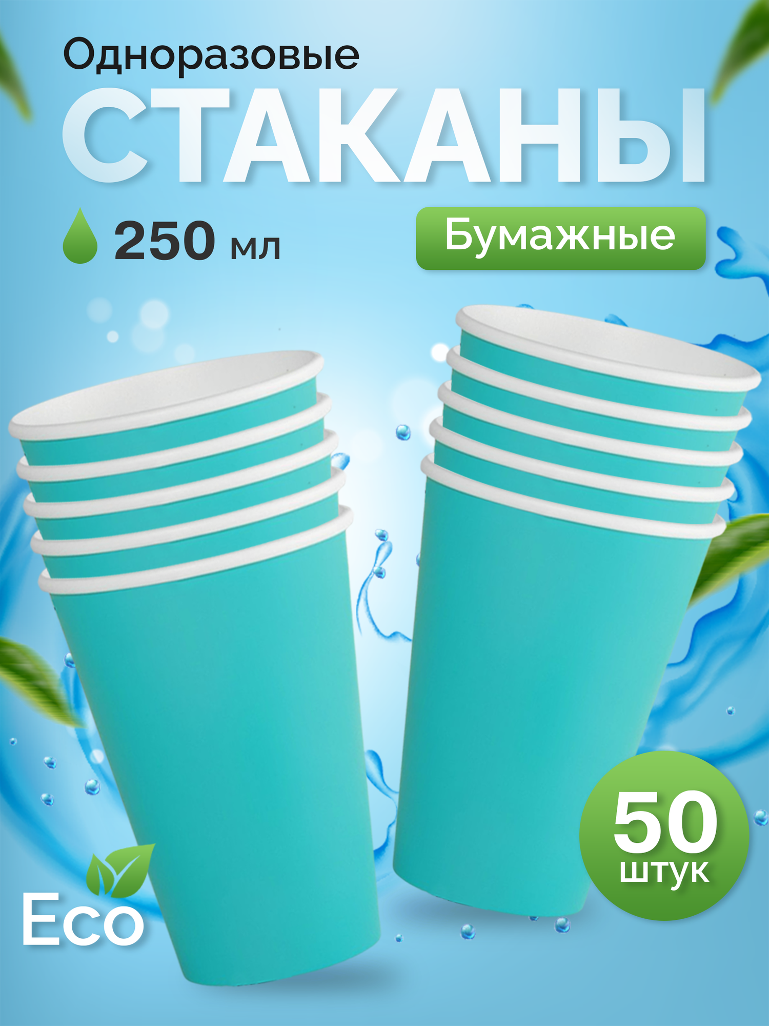 Стаканы одноразовые бумажные 250 мл, для кофе и чая, 50 шт, бирюзовый информация: