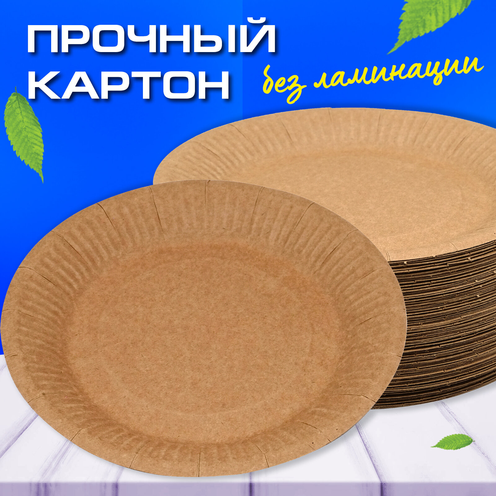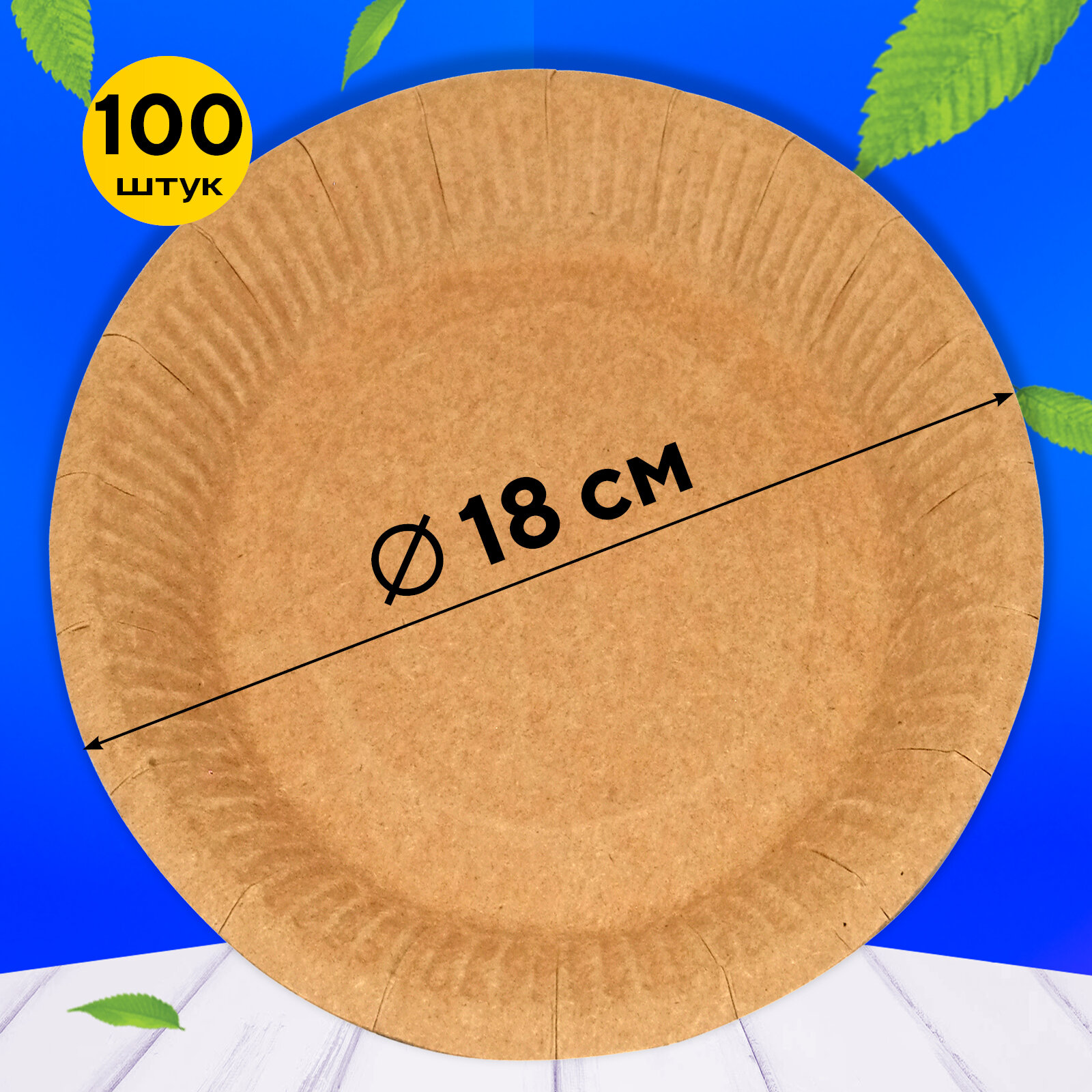 10 цен на Тарелки одноразовые крафтовые 18 см без ламинации, упаковка 100 шт