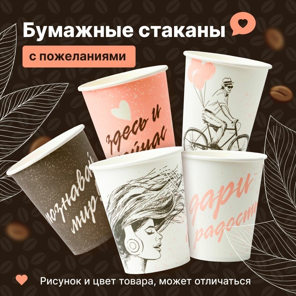Набор бумажных стаканов GoodCup, объем 250 мл, 50 шт, с пожеланием, однослойные: для кофе, чая, холодных и горячих напитков информация: