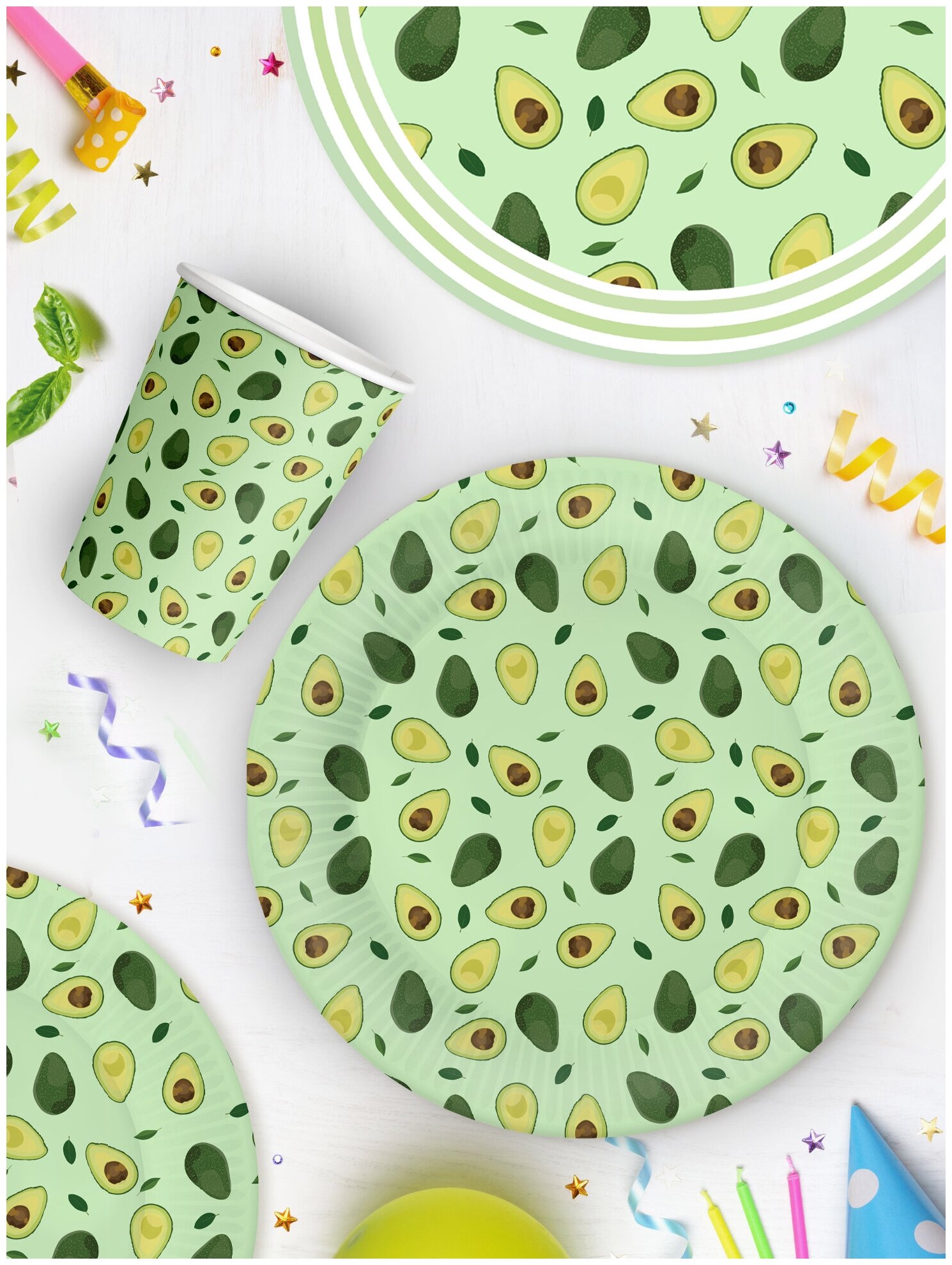 Набор одноразовой бумажной посуды для праздника ND Play / Авокадо-2 (тарелка мал., тарелка бол., стакан по 18 шт.) информация: