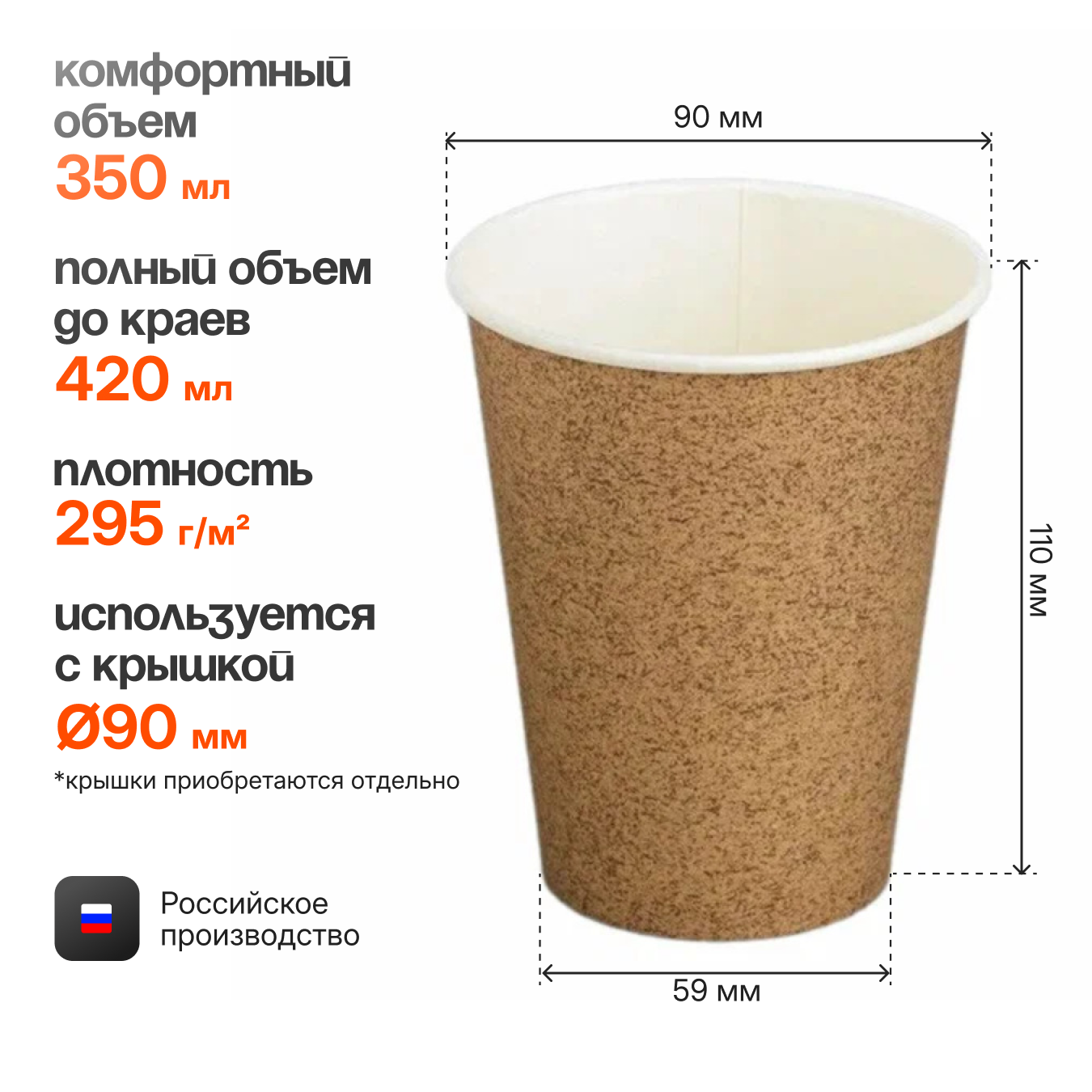 Стакан бумажный однослойный 350 мл "Под крафт", (50шт) информация: