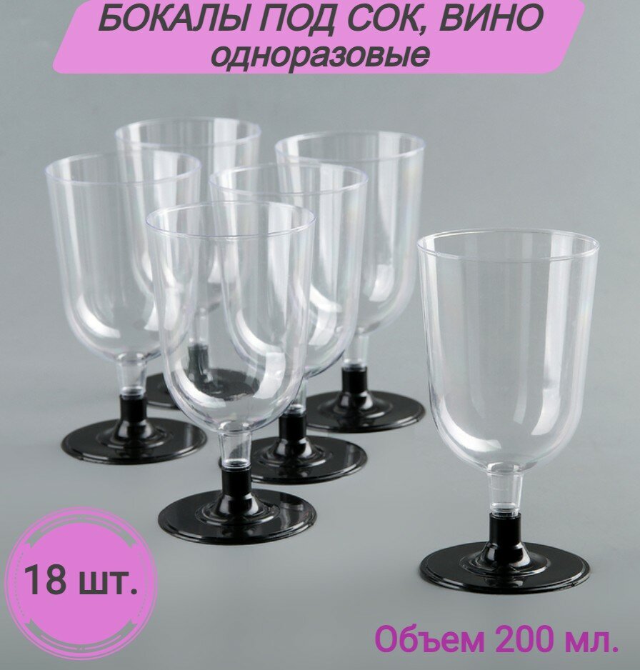 Отзывы на Бокалы Кристалл одноразовые для вина шампанского пластиковые фужеры посуда для праздника набор 18 шт 200 мл на свадьбу